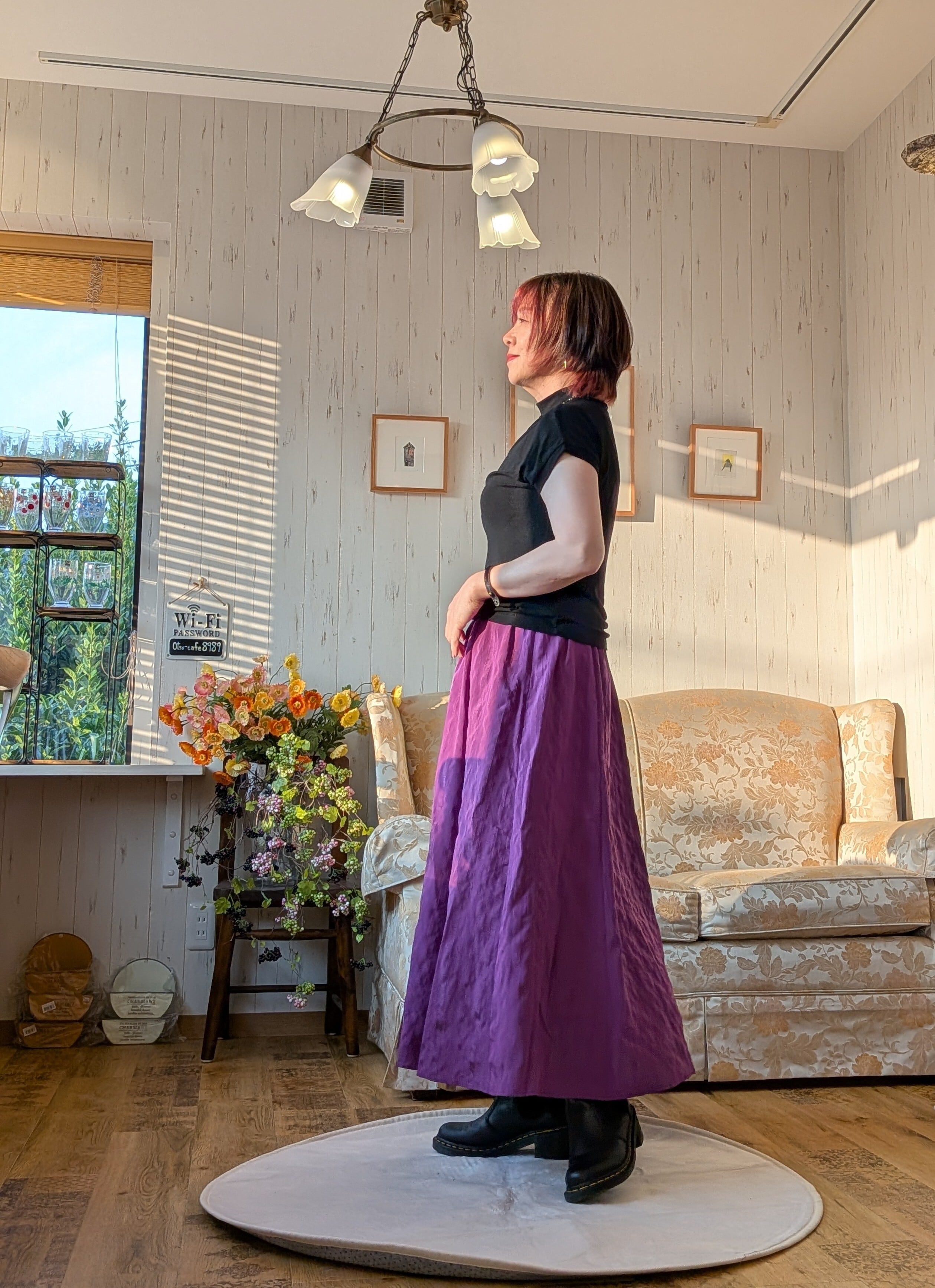 シンプルなトップスと合わせて、お互いを引き立てあってください。