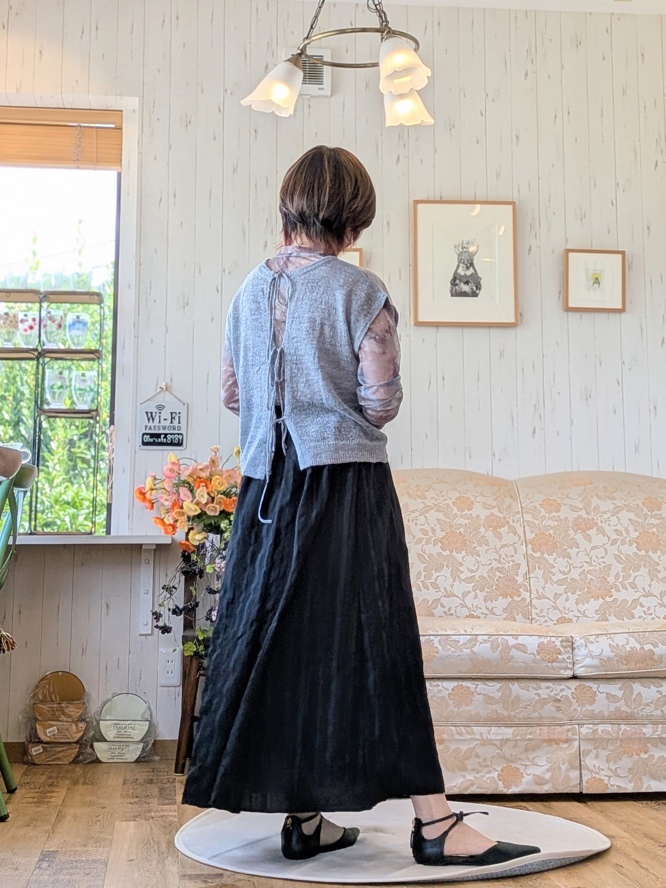 その日の気分でリボンを前にしても、前を開けても着用できます。