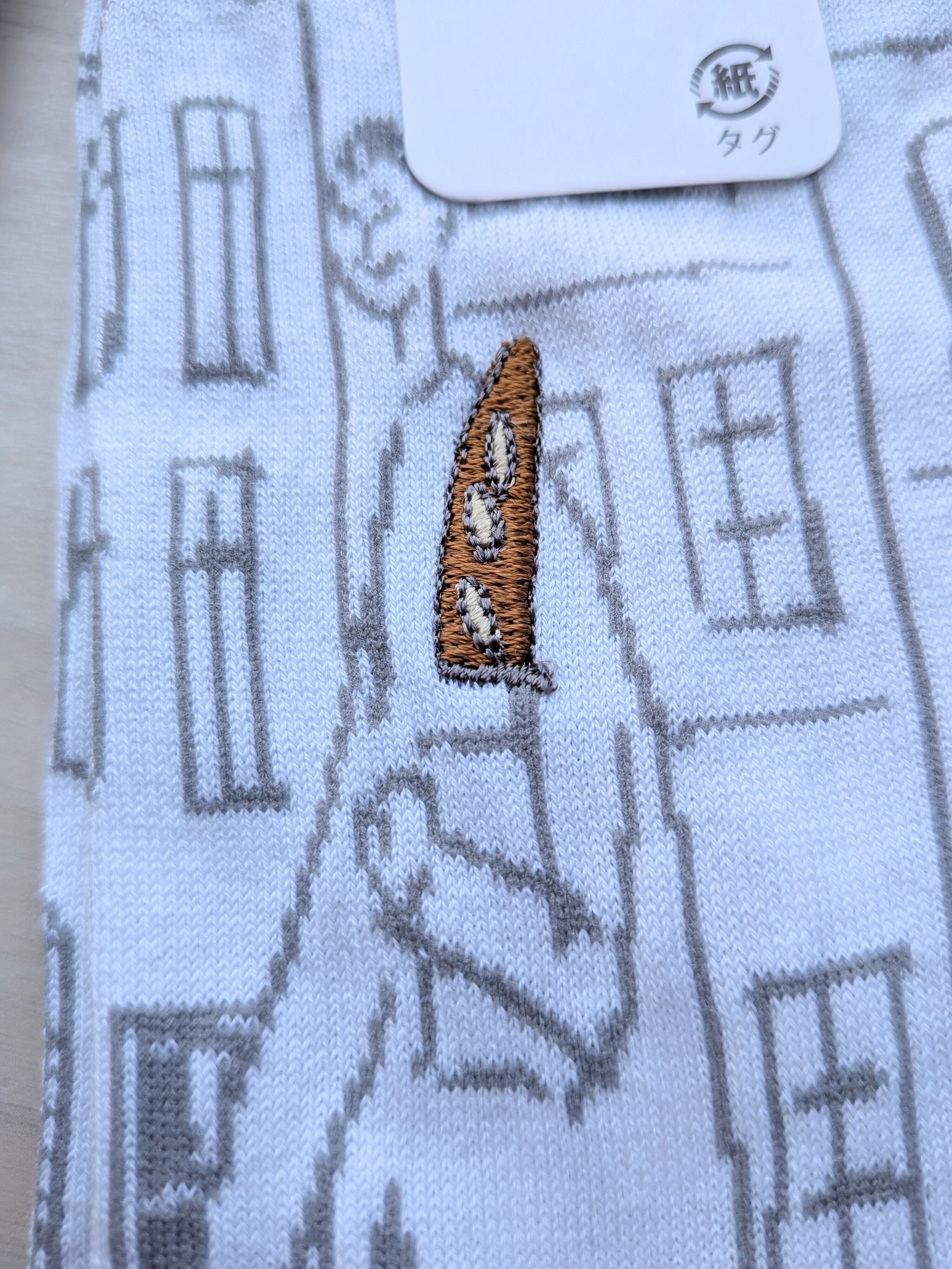 パンくずを撒いてほしい鳥は 刺繍で表現されています