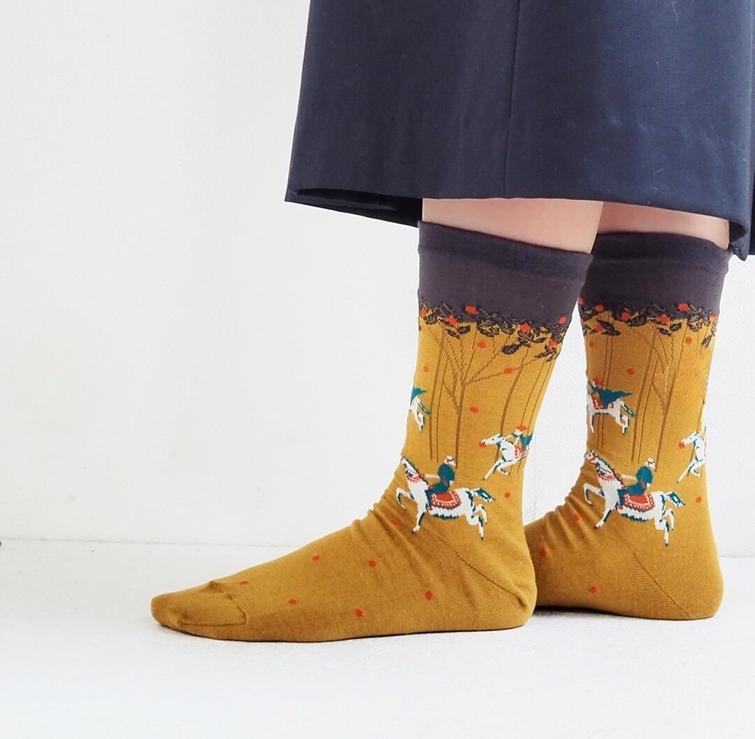 【andèotte】ホース◇国産ハイクオリティソックス・刺繍 靴下・クルー丈・レディース