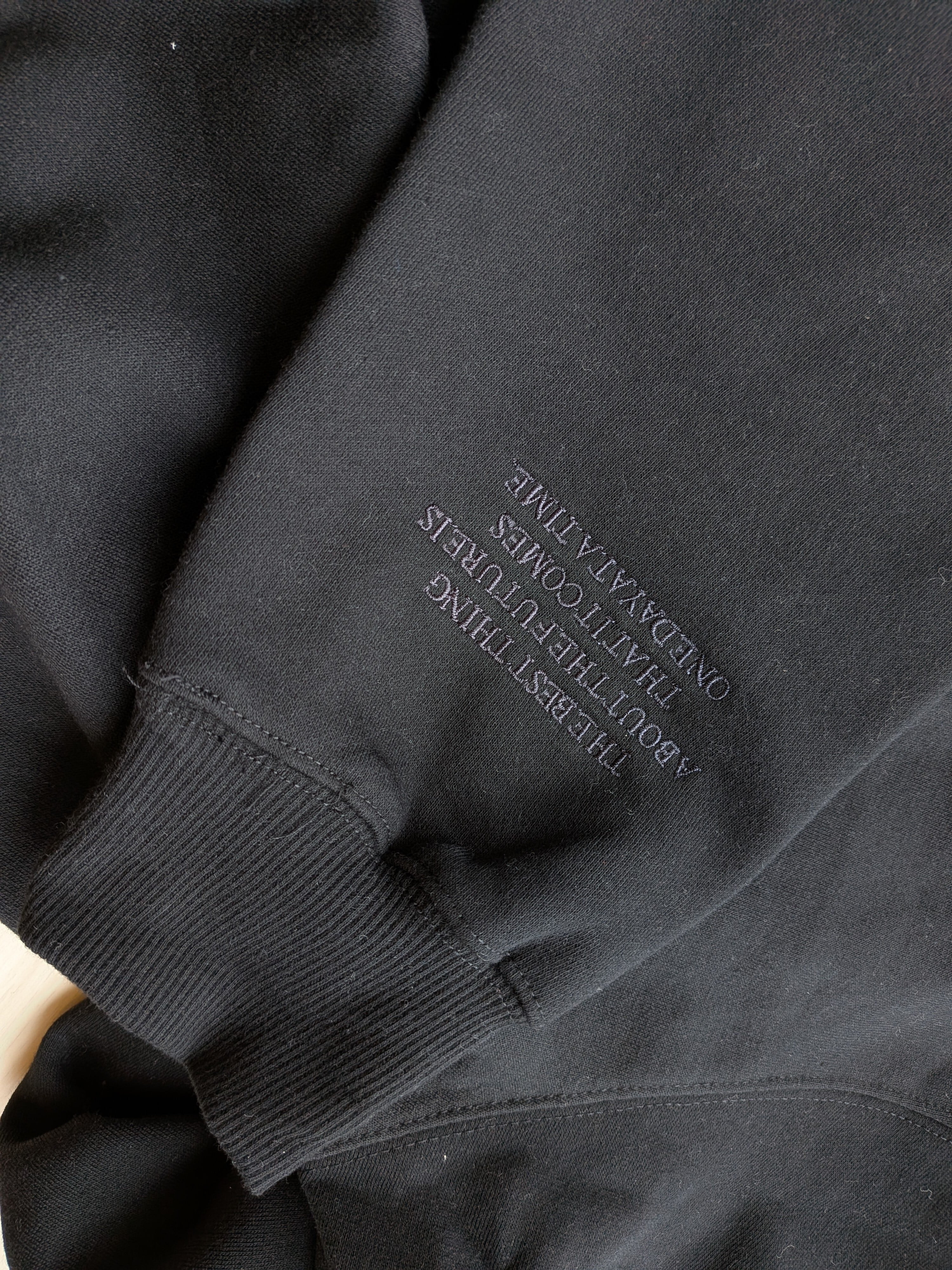 袖口とバックネック下に刺繍ロゴが施された、裏起毛プルオーバー。