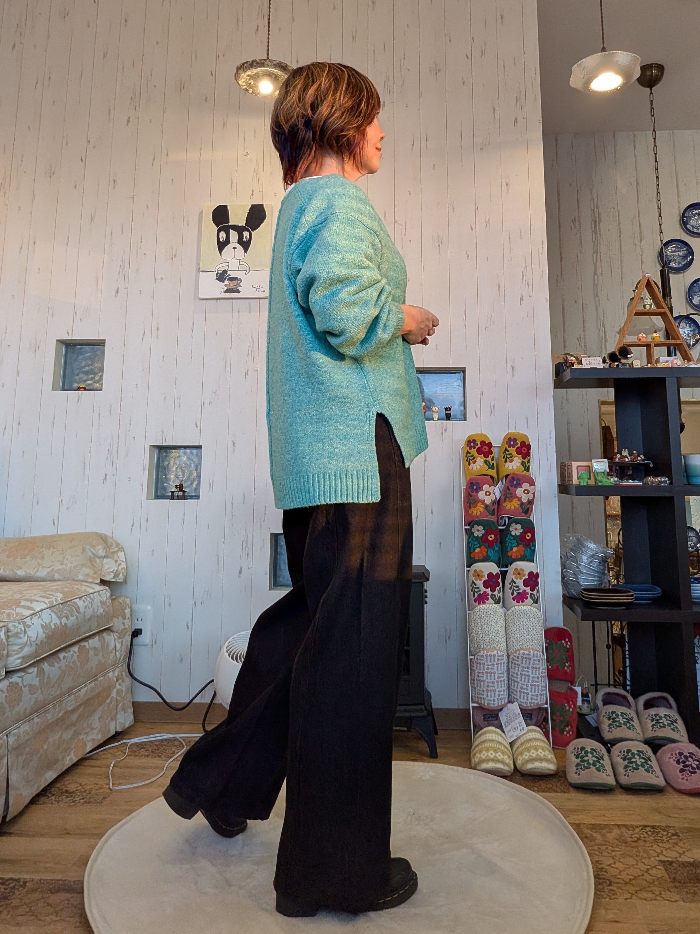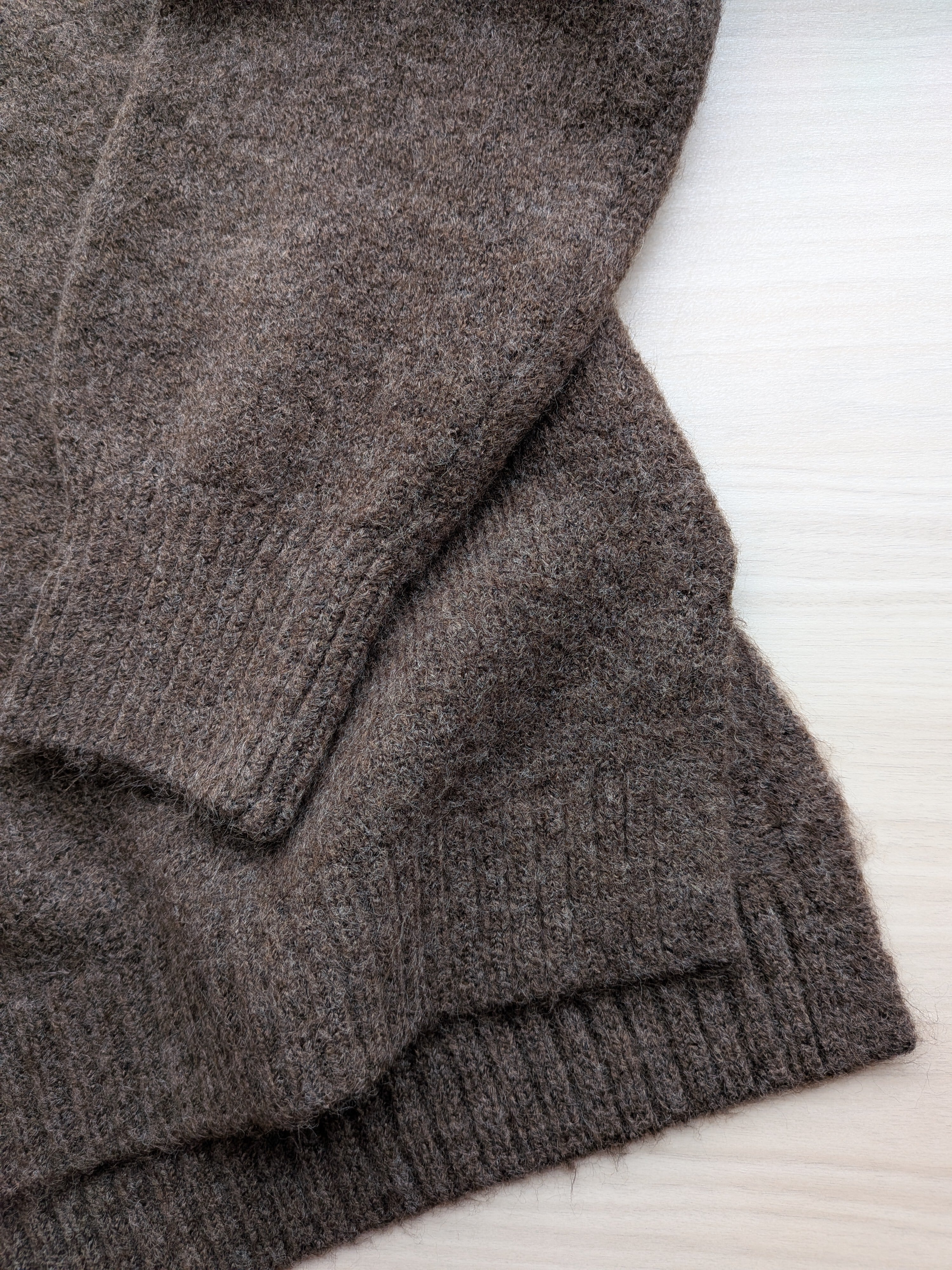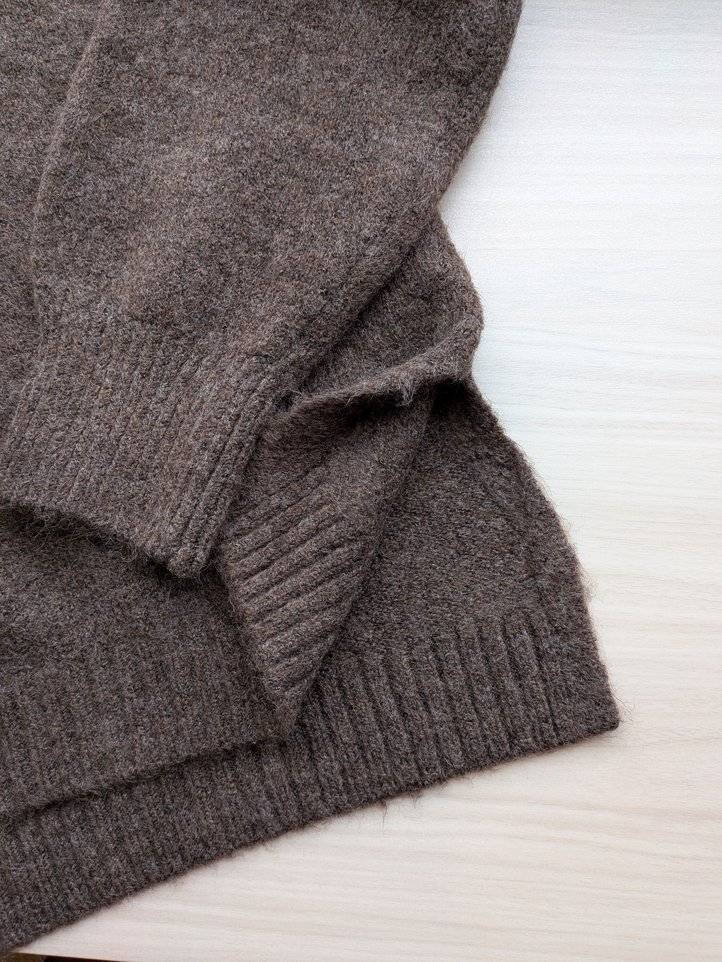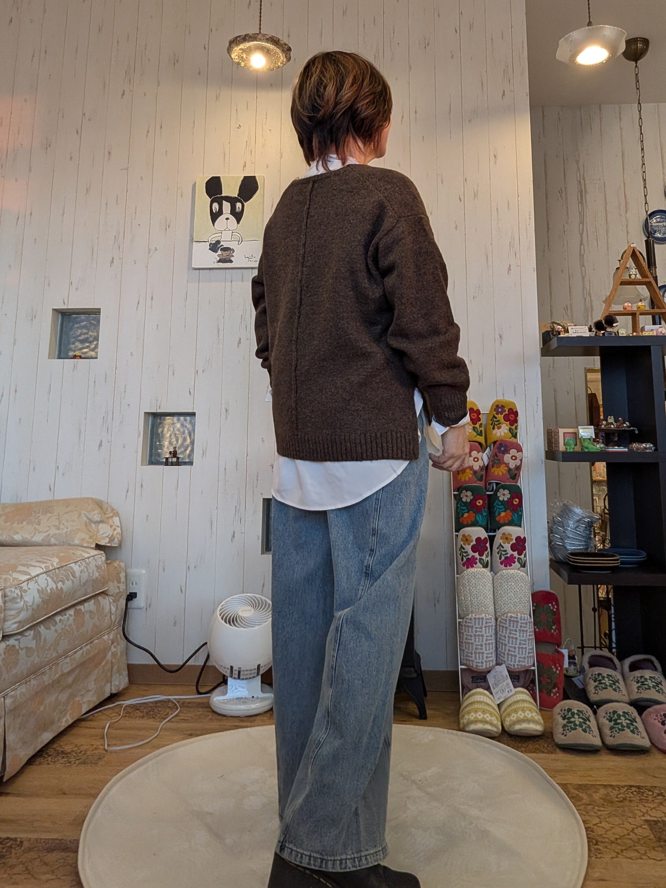 ヤク糸のように、チクチクせずふんわり軽い肌ざわりが自慢のニット。