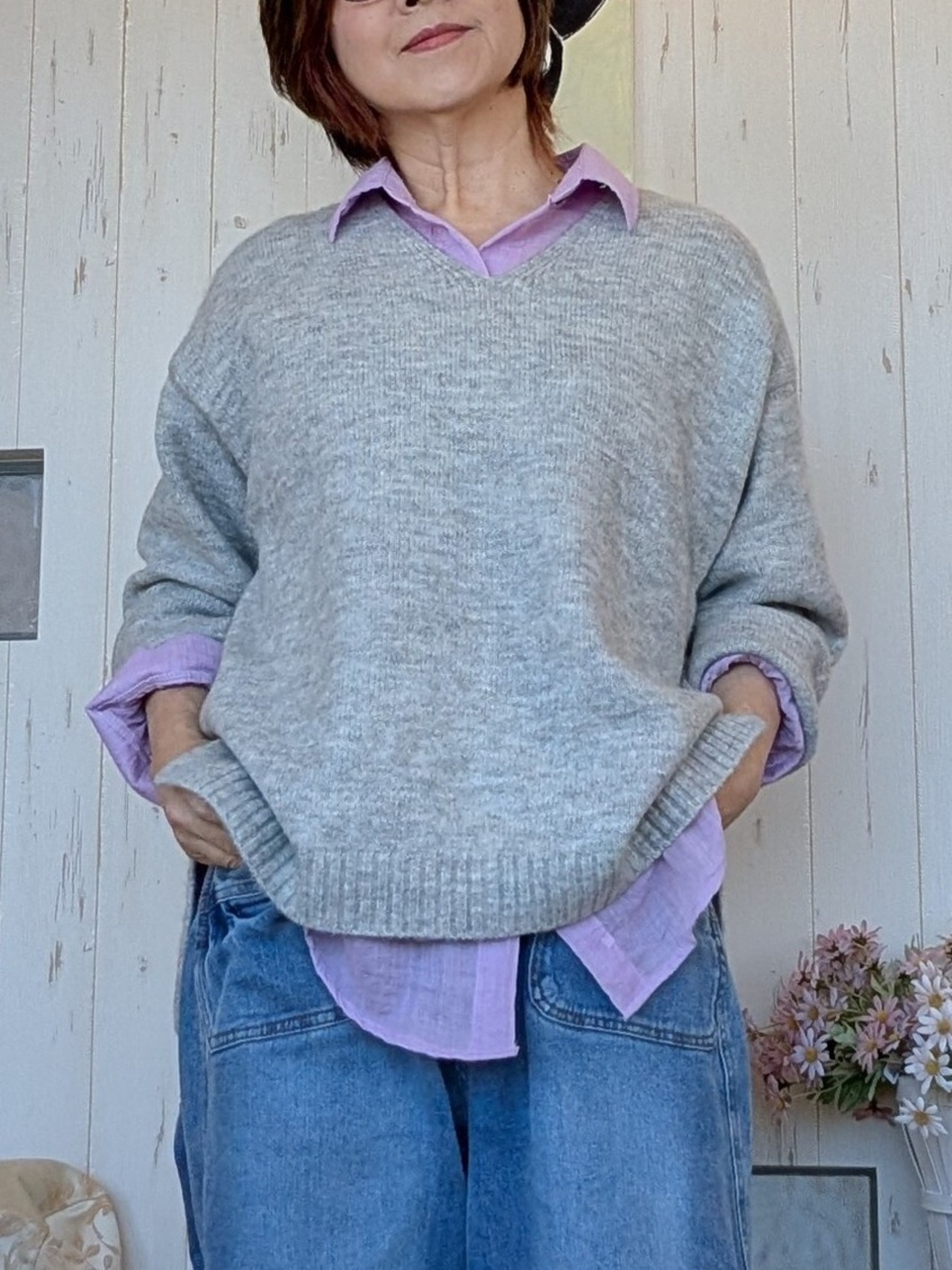 【人気色再入荷】Vネックニットプルオーバー◇軽くて柔らか
