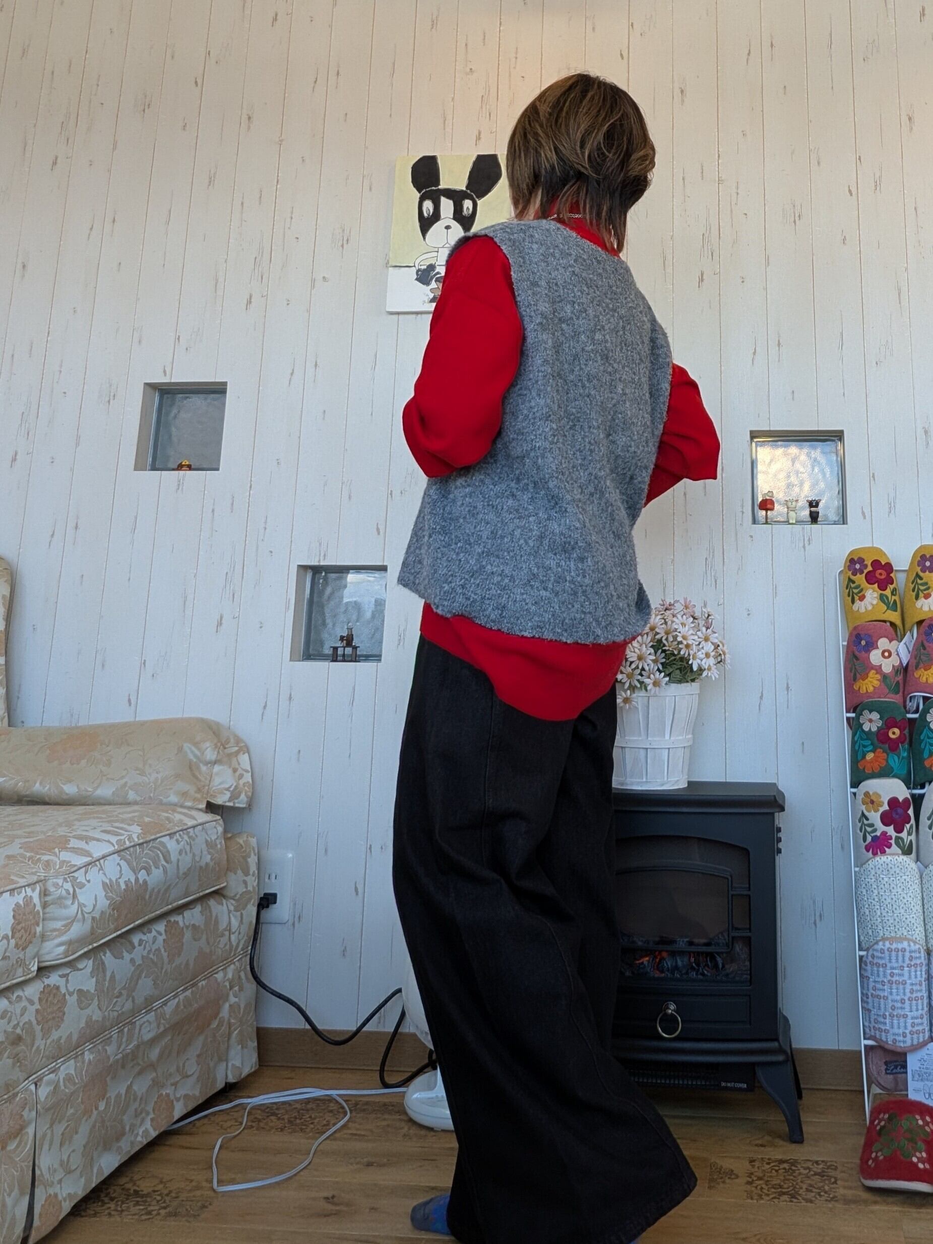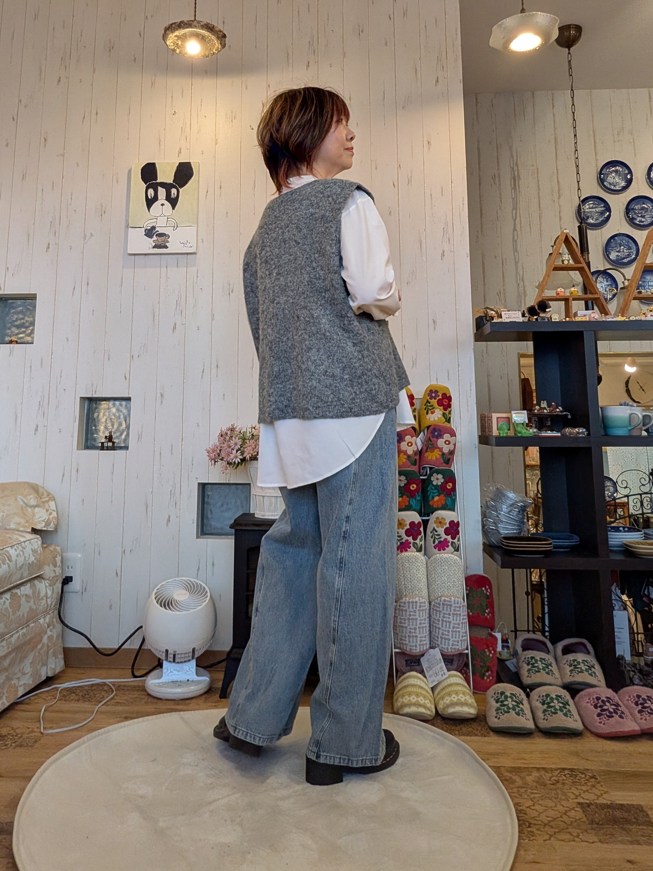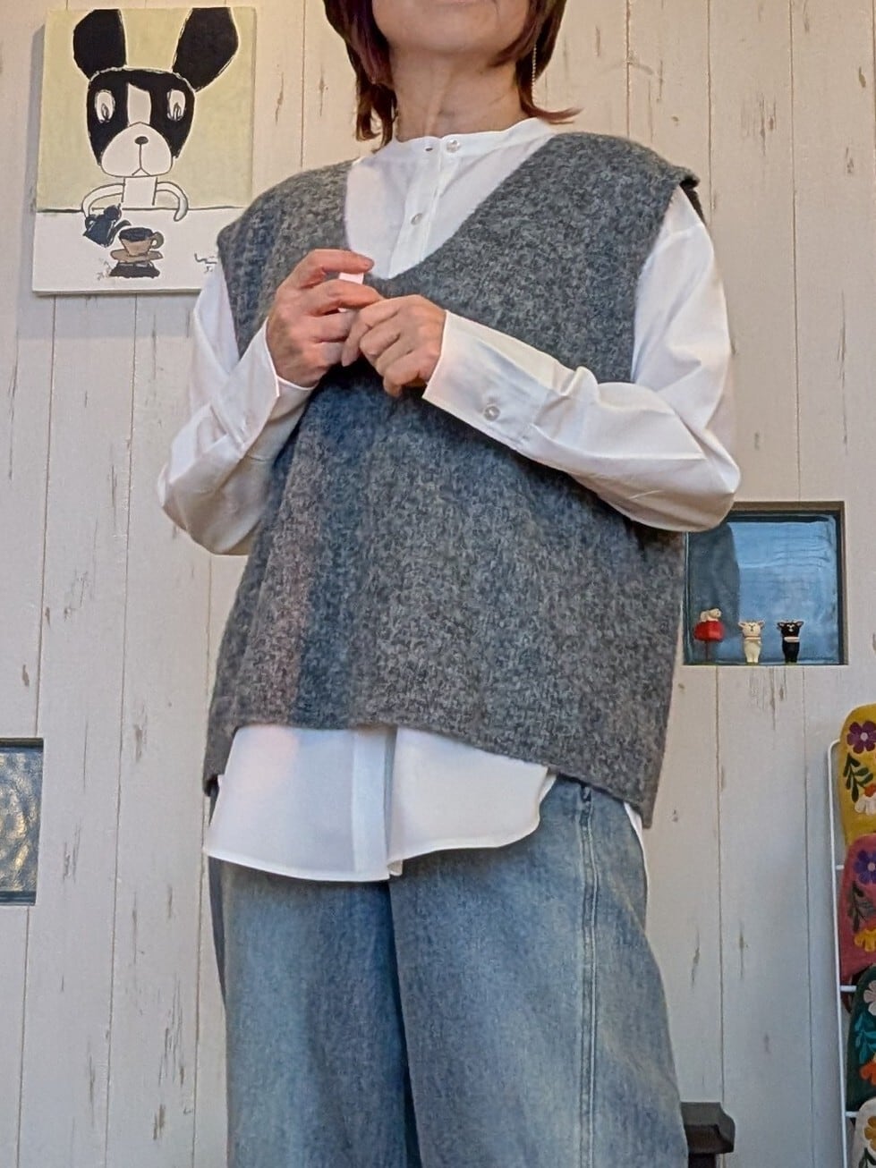 冬のレイヤーに必須のシャツとベストの便利なセット◇ケガキニットベストレイヤード