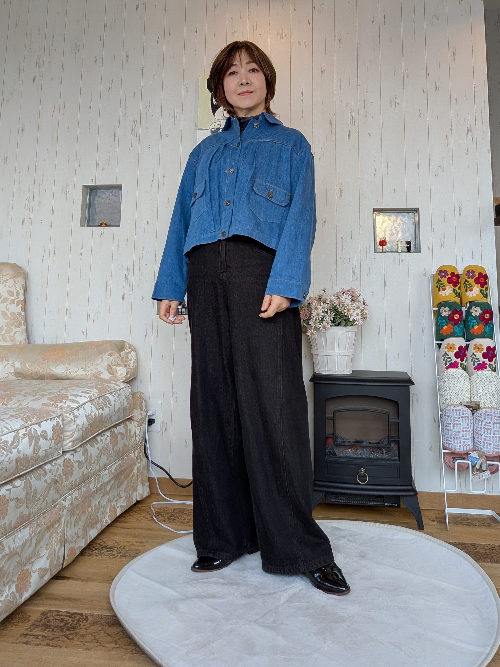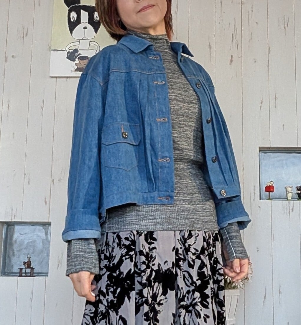 開けて羽織に留めてブラウスに◇バックタックデニムジャケット