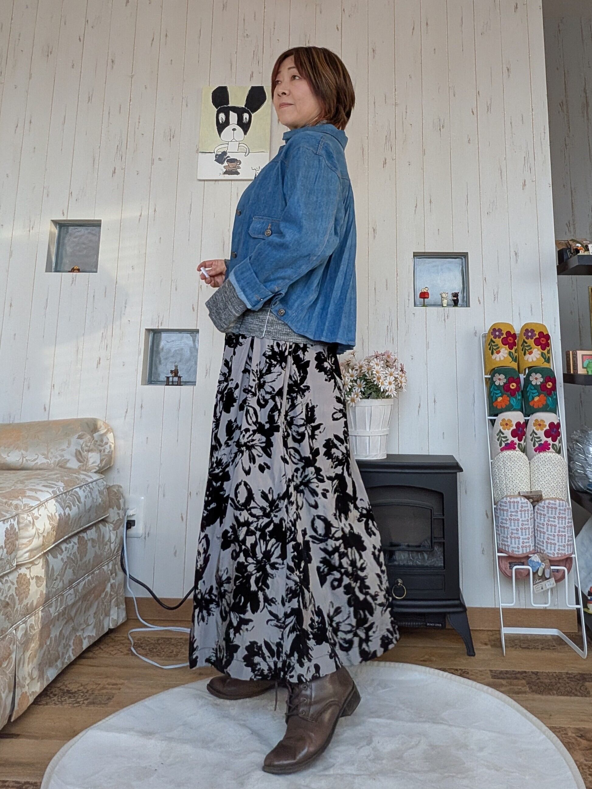 柔らかなデニム素材で女性らしく着こなせます。