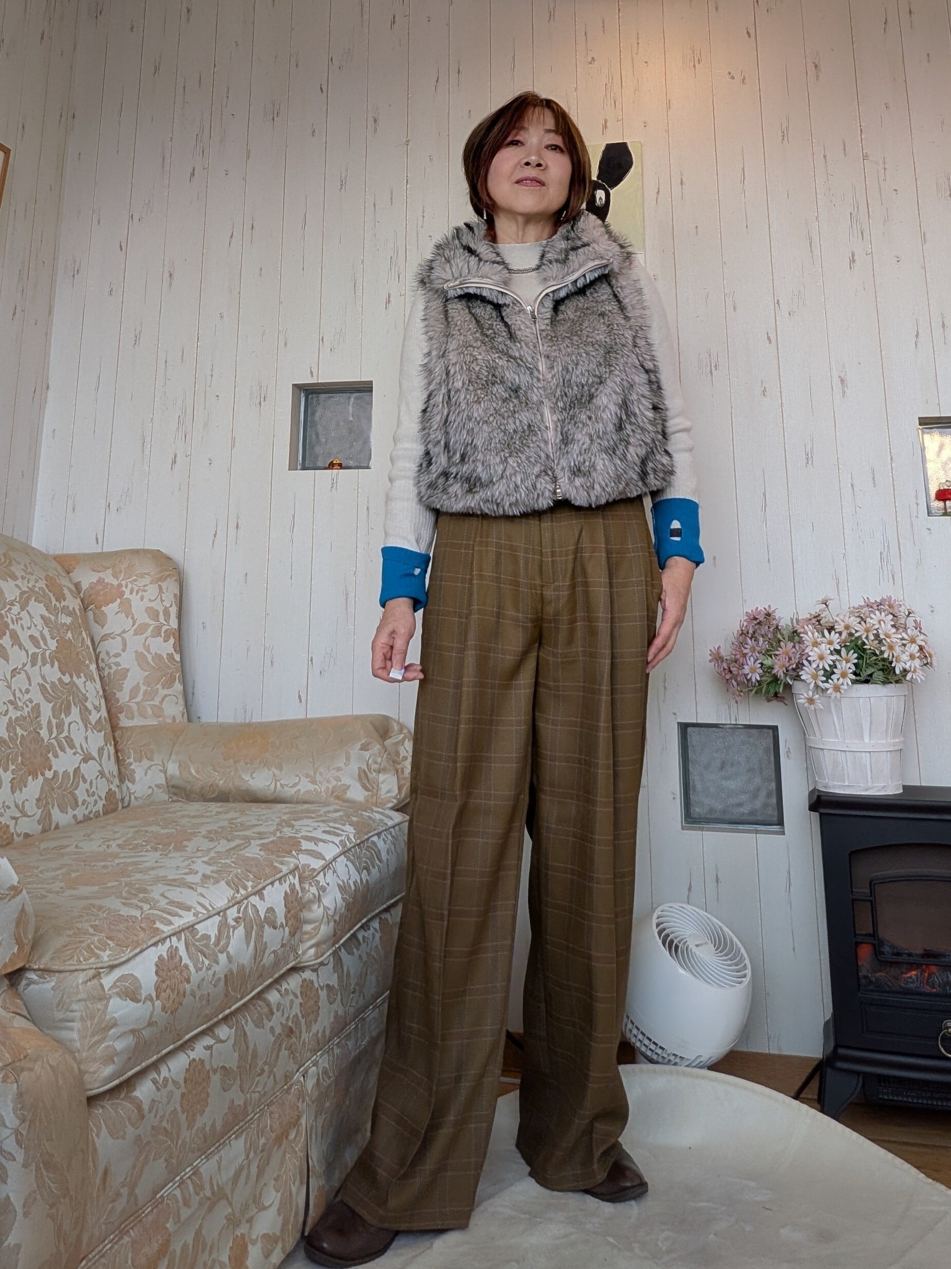 タックとセンタープレスを入れて、脚長すっきり見えのパンツです。