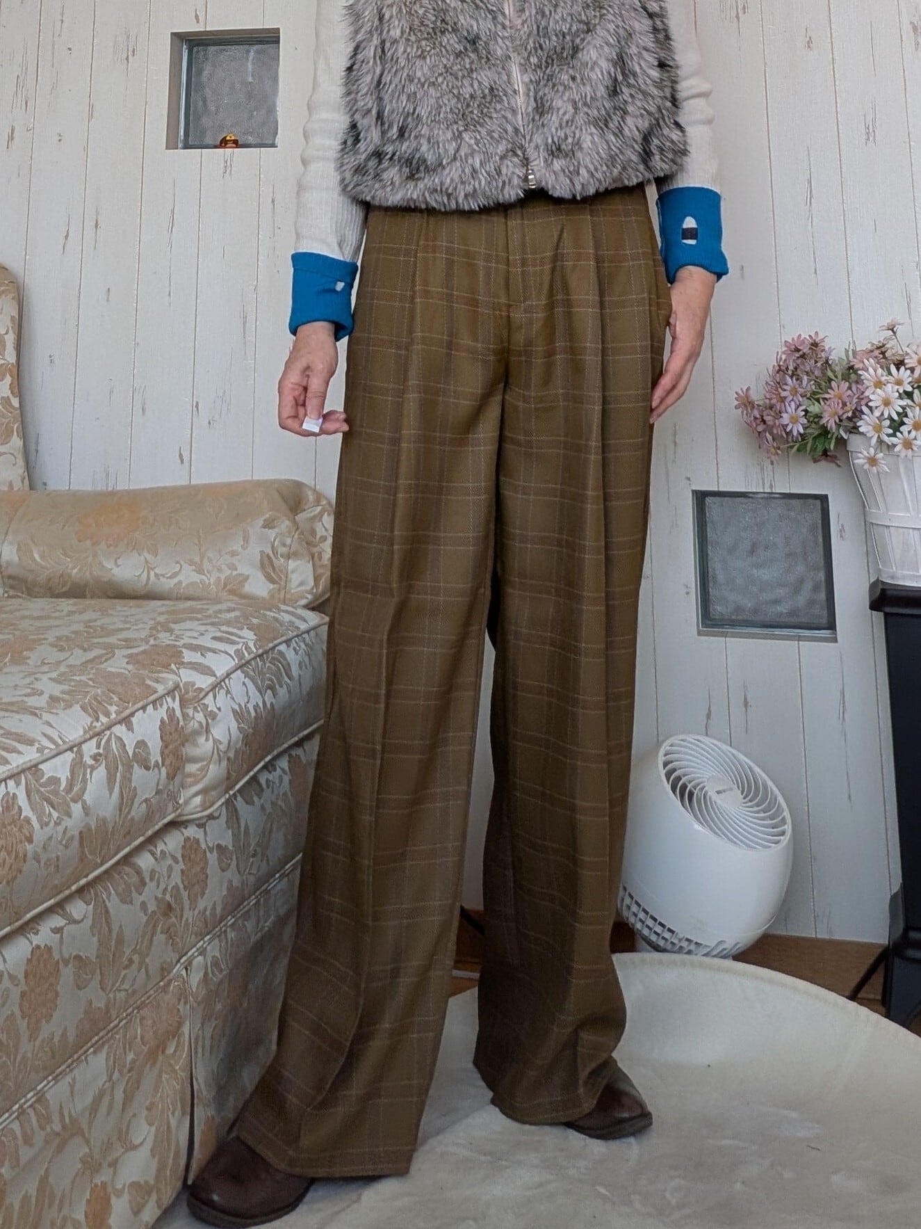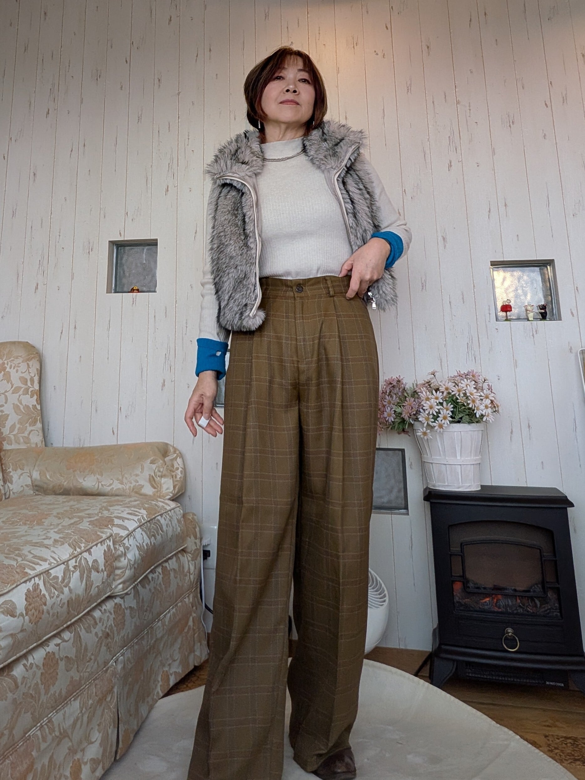 端正なチェックパンツ◇杢チェック ストレートパンツ