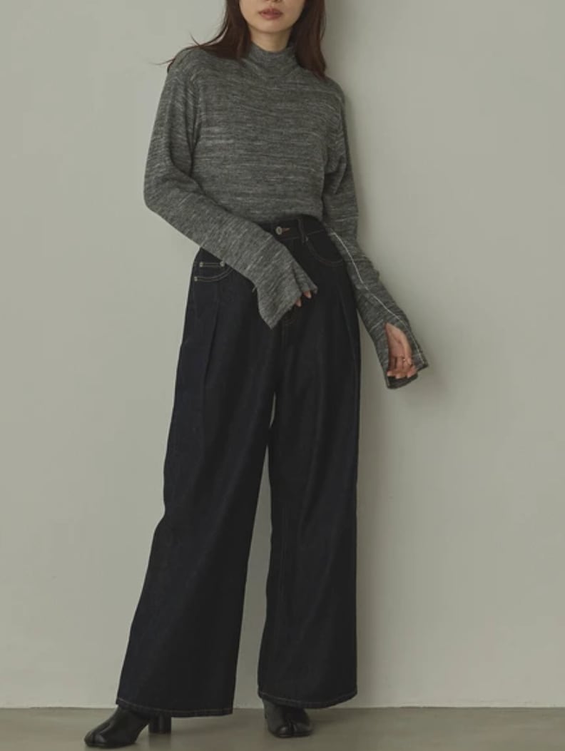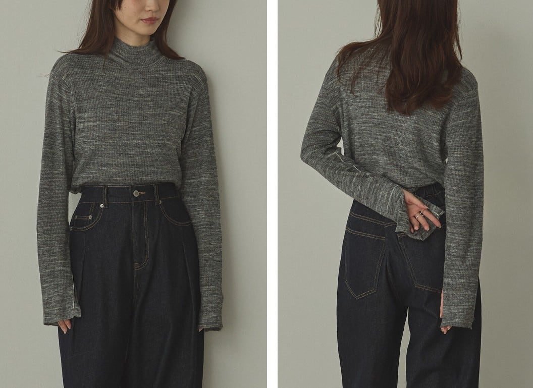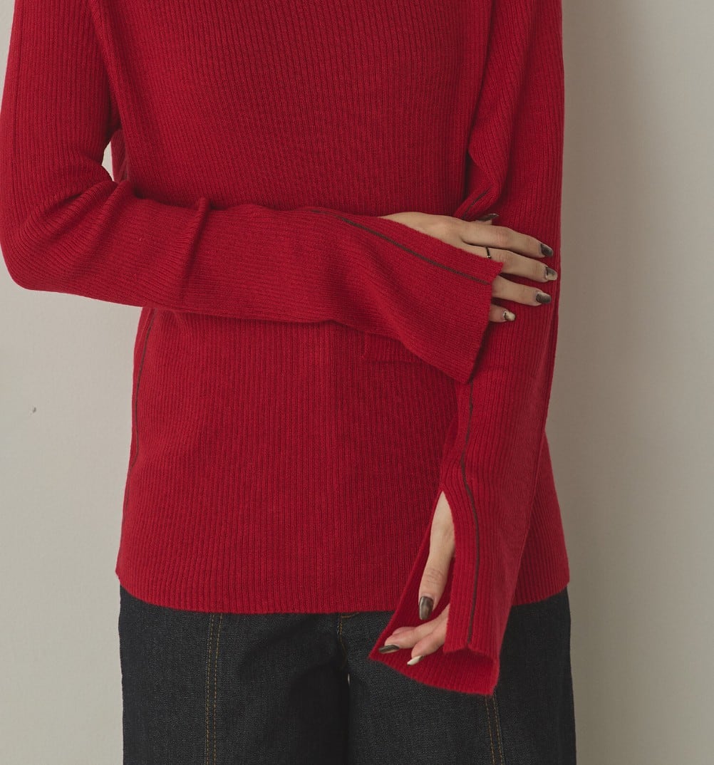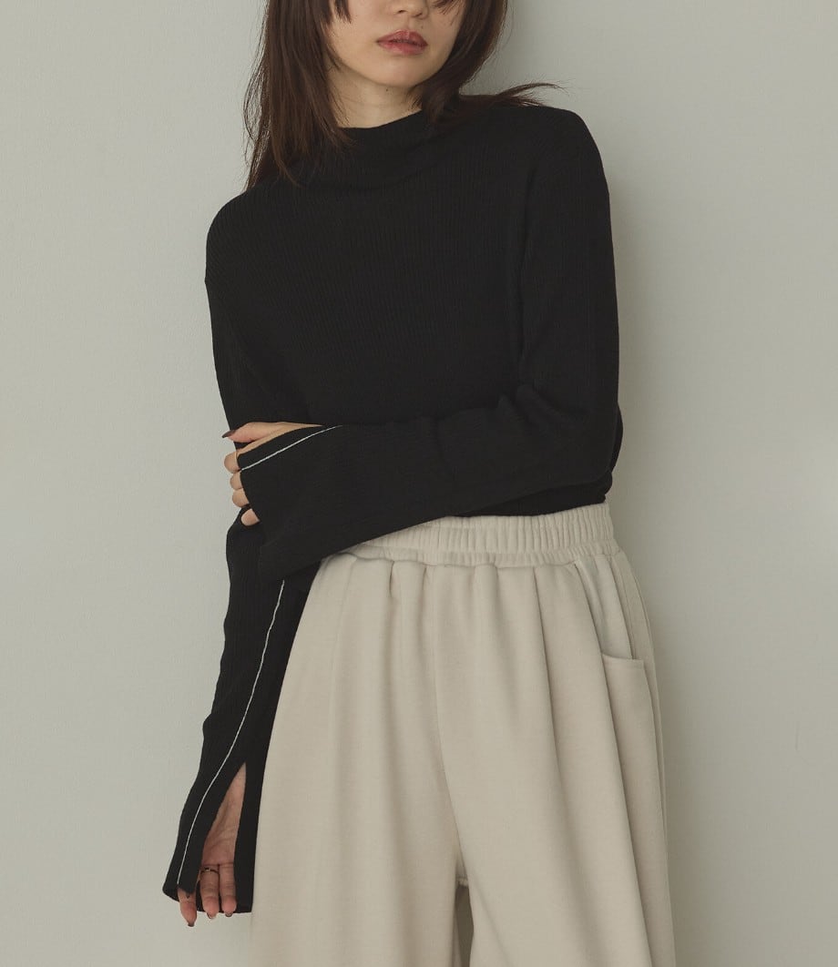 袖口スリットが抜け感を出してくれる、タートルリブニット。