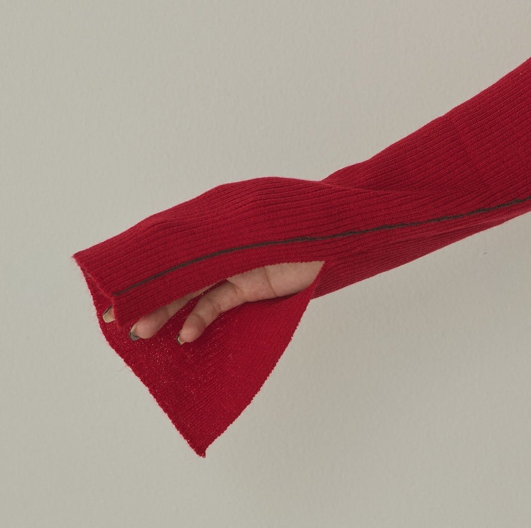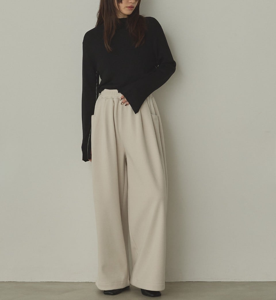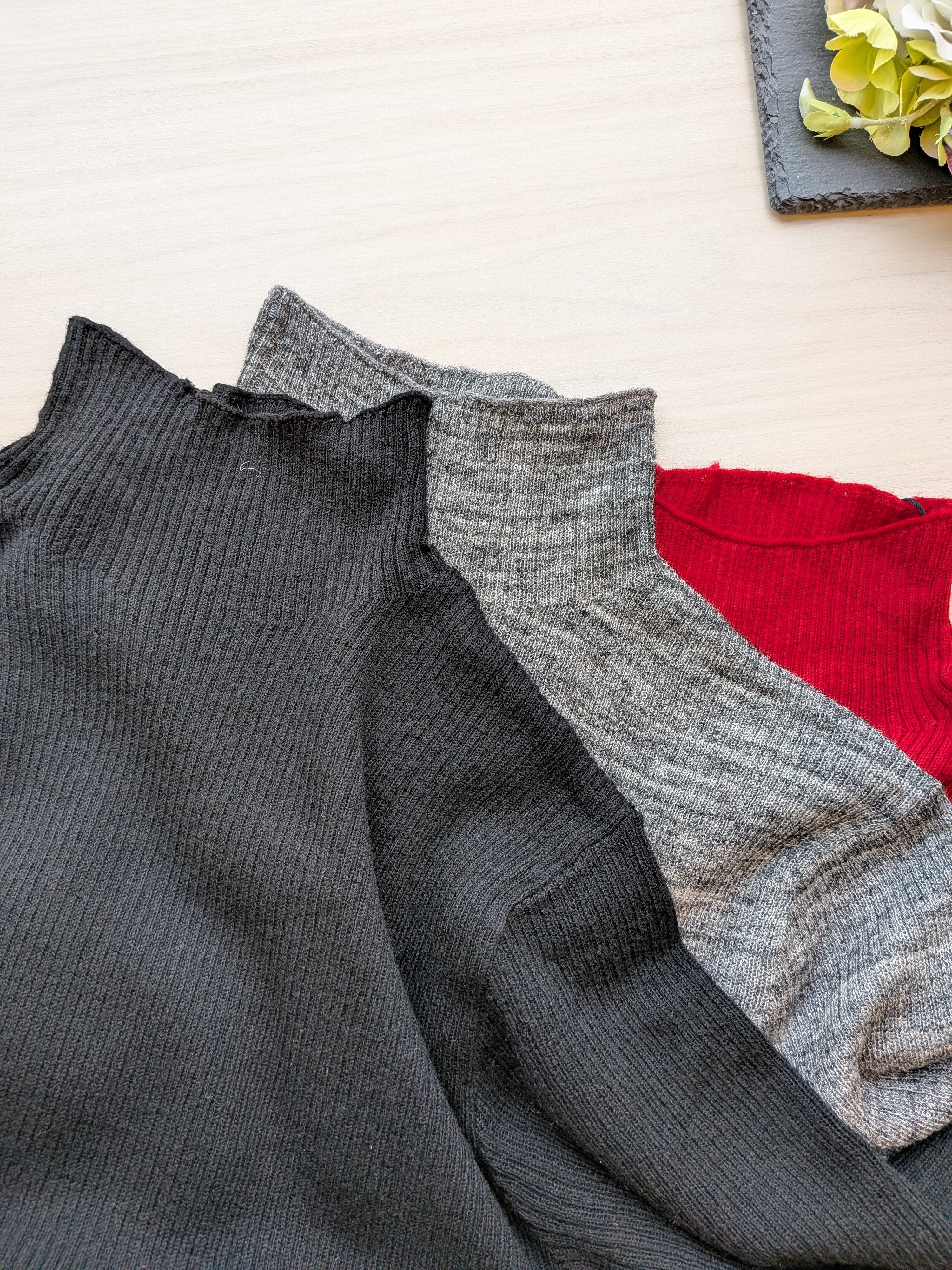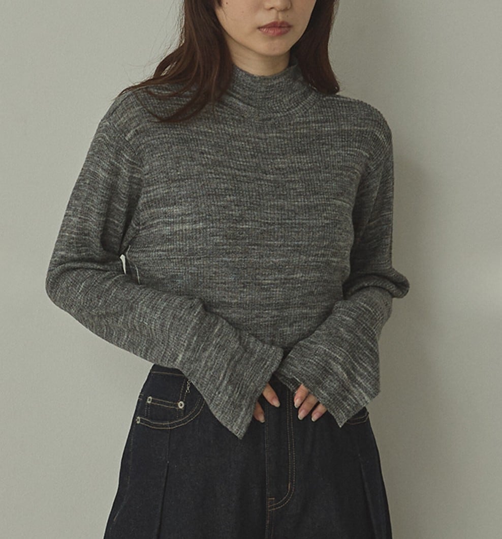 袖口スリットが抜け感を出してくれる、タートルリブニット。