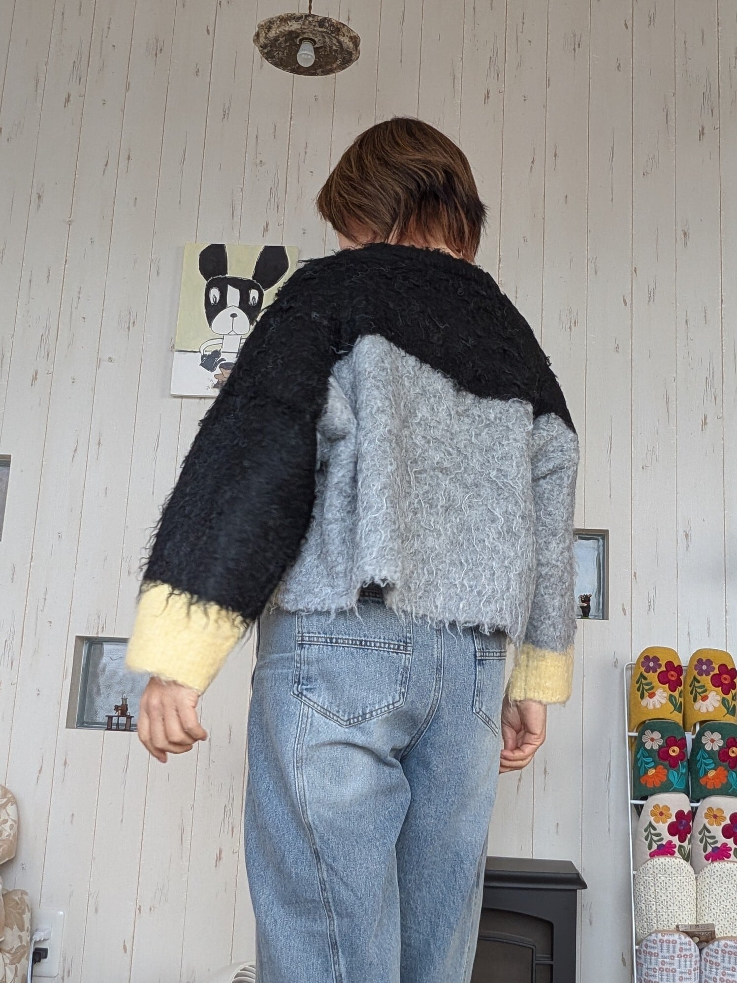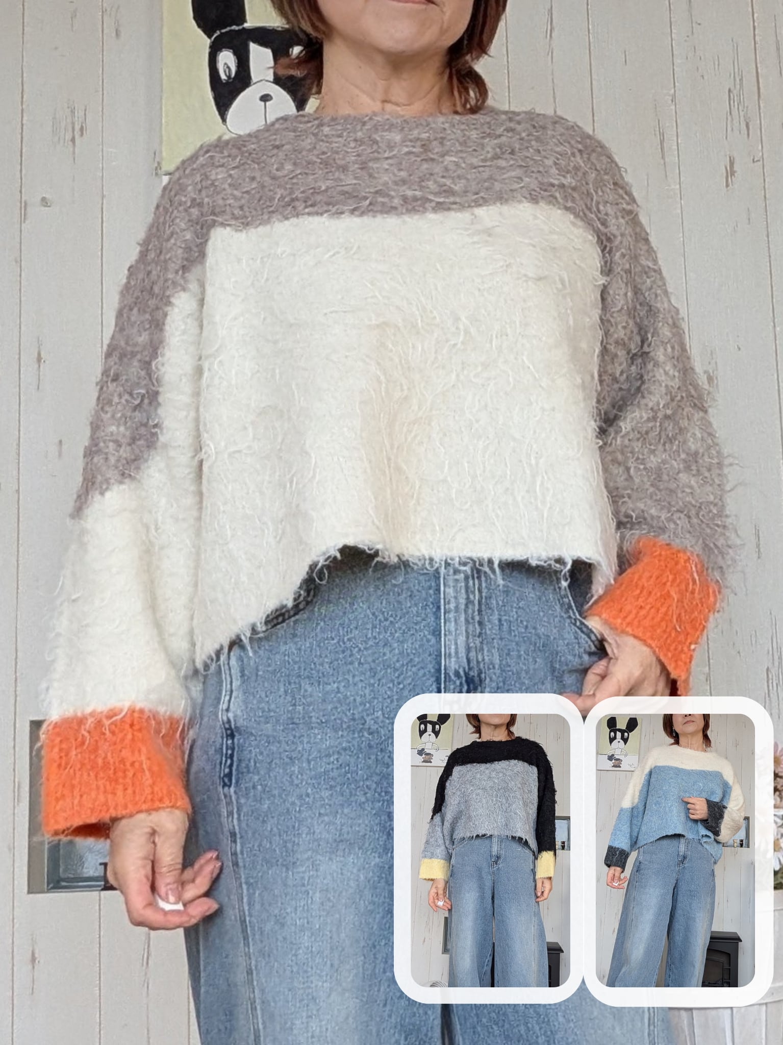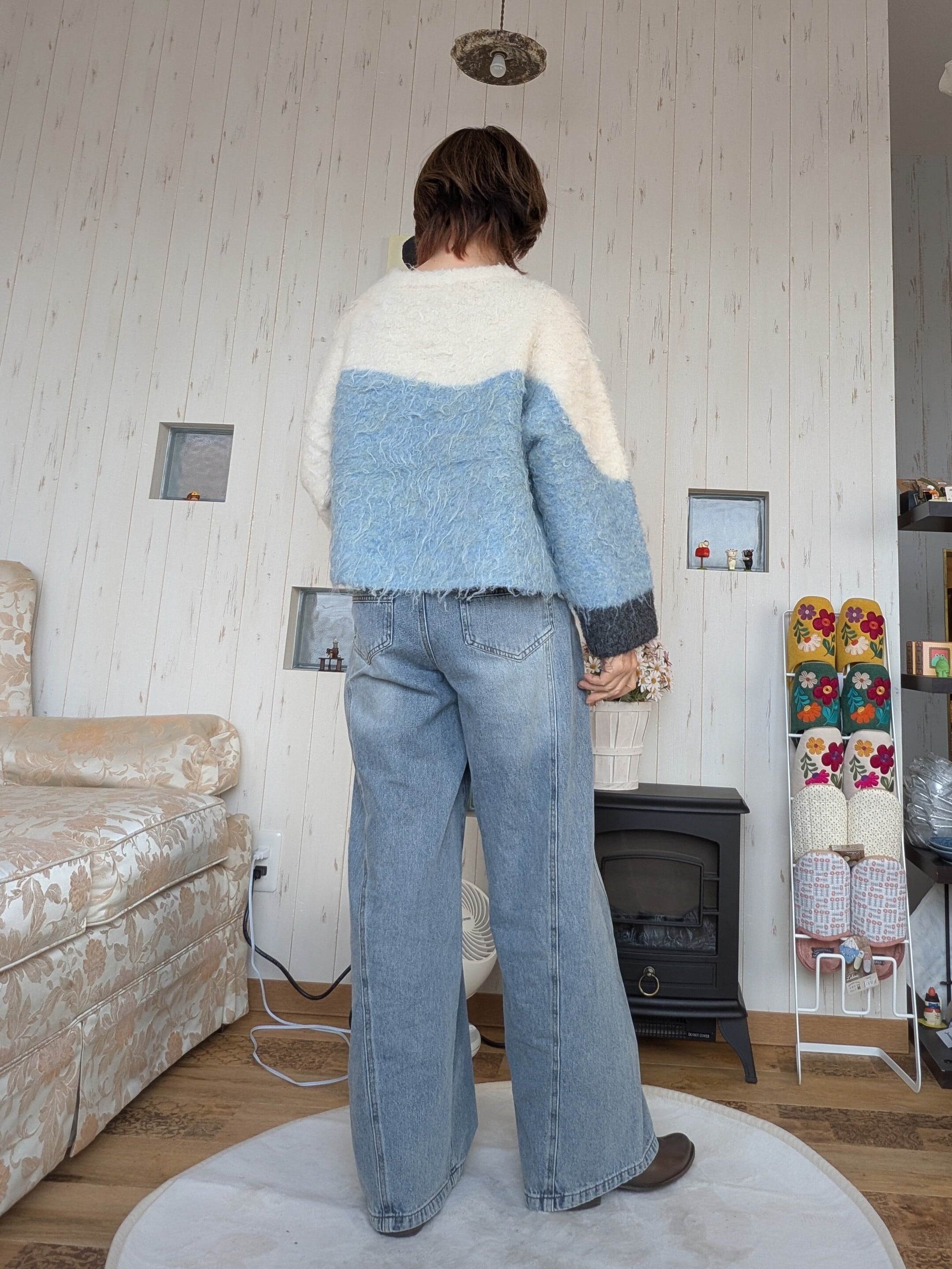ウェーブ配色ショートニットトップス◇ウール混で暖か&程よき厚み