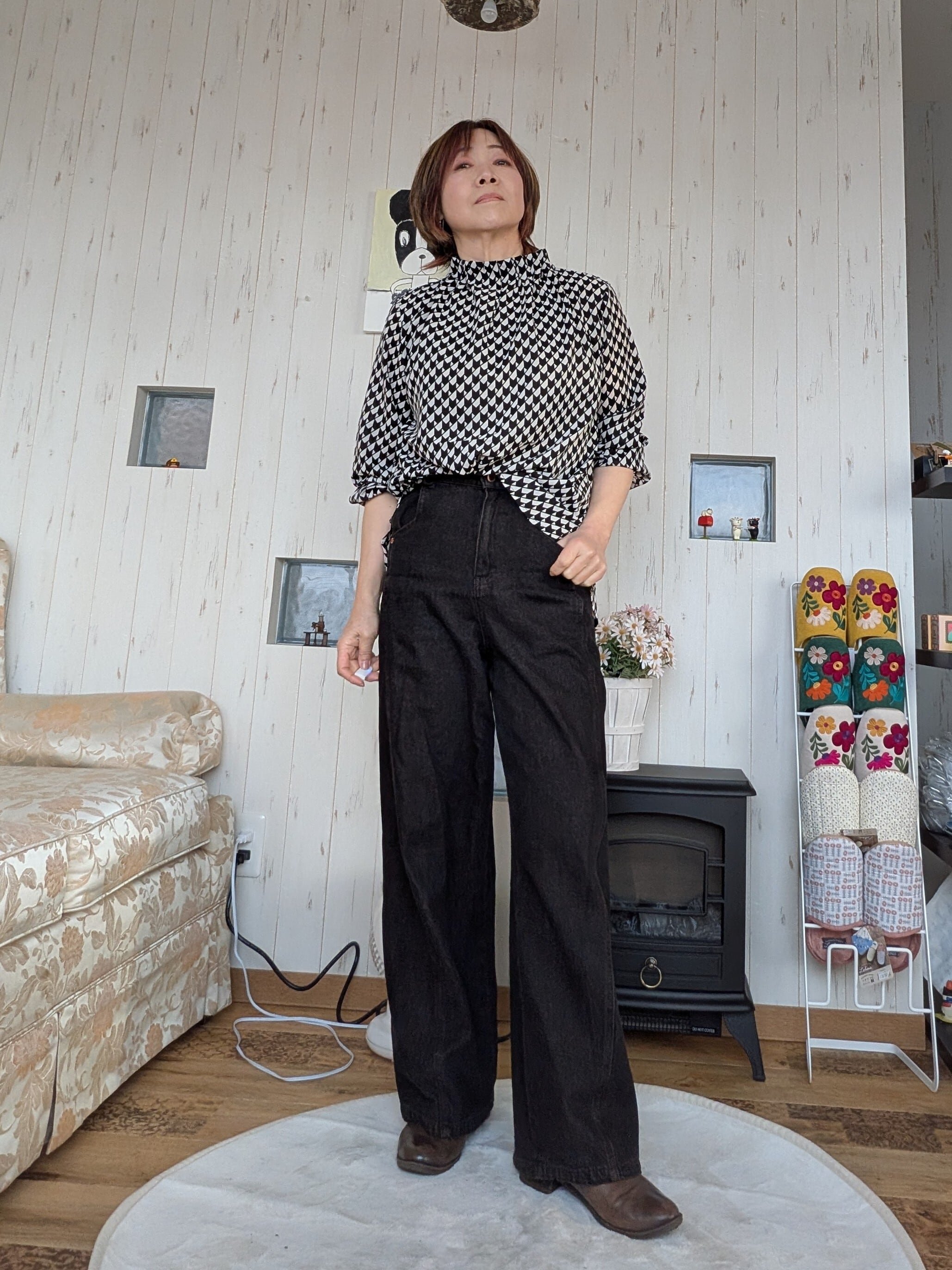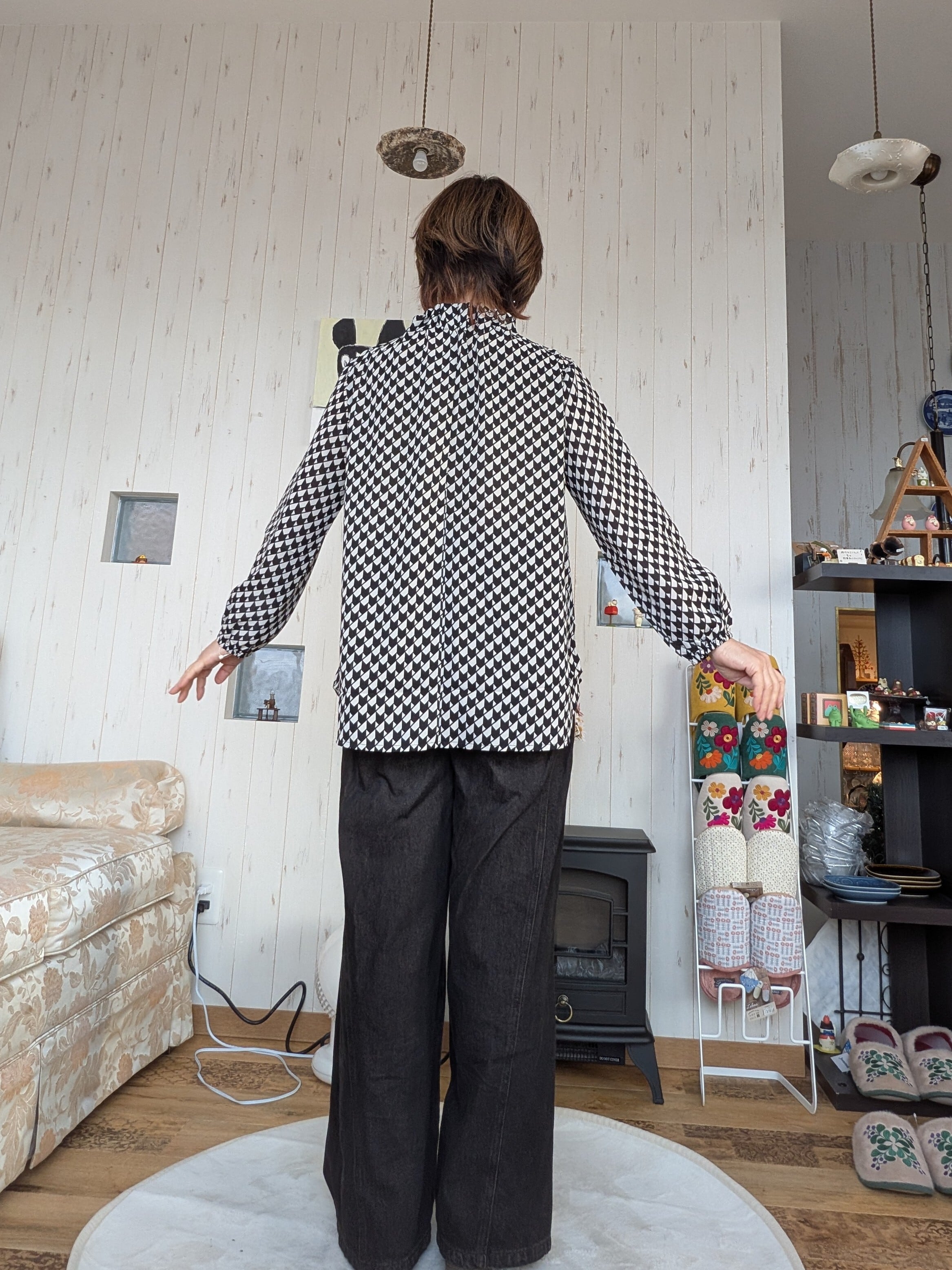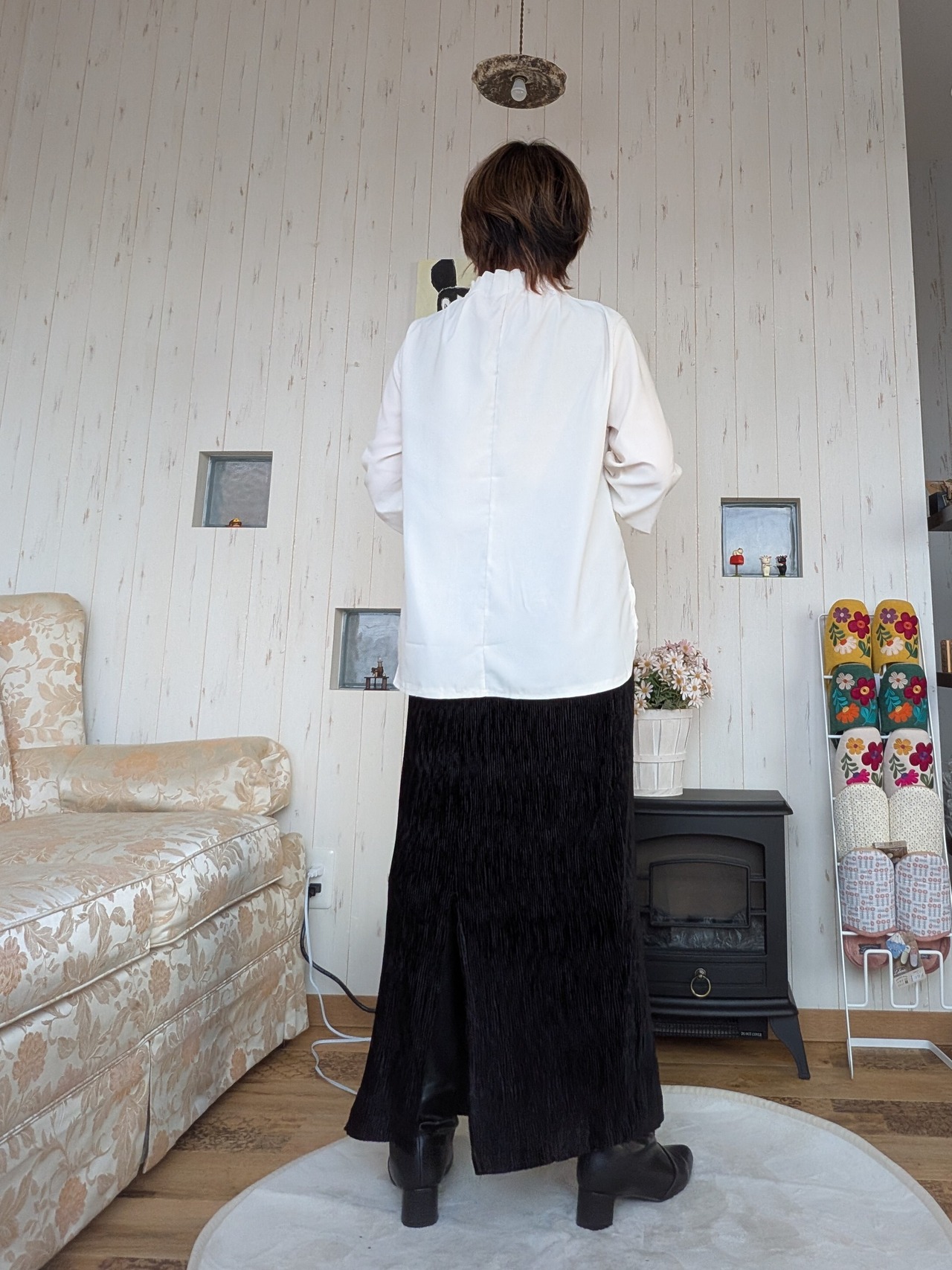 ジャケットやニットとのレイヤードにもおすすめです。