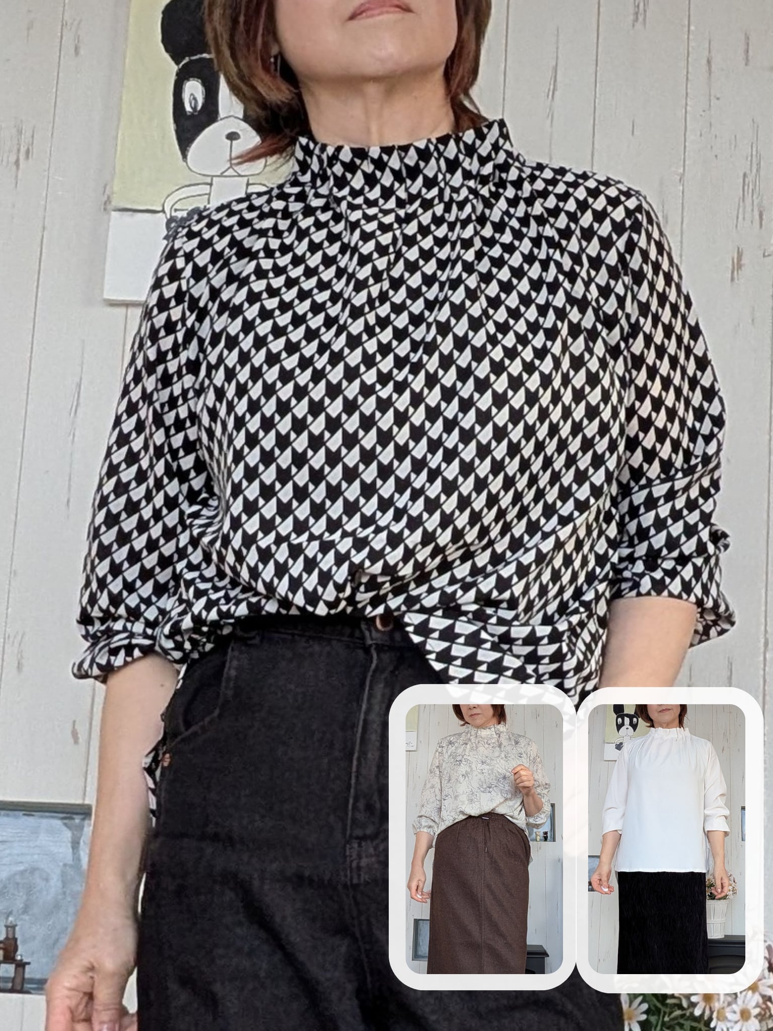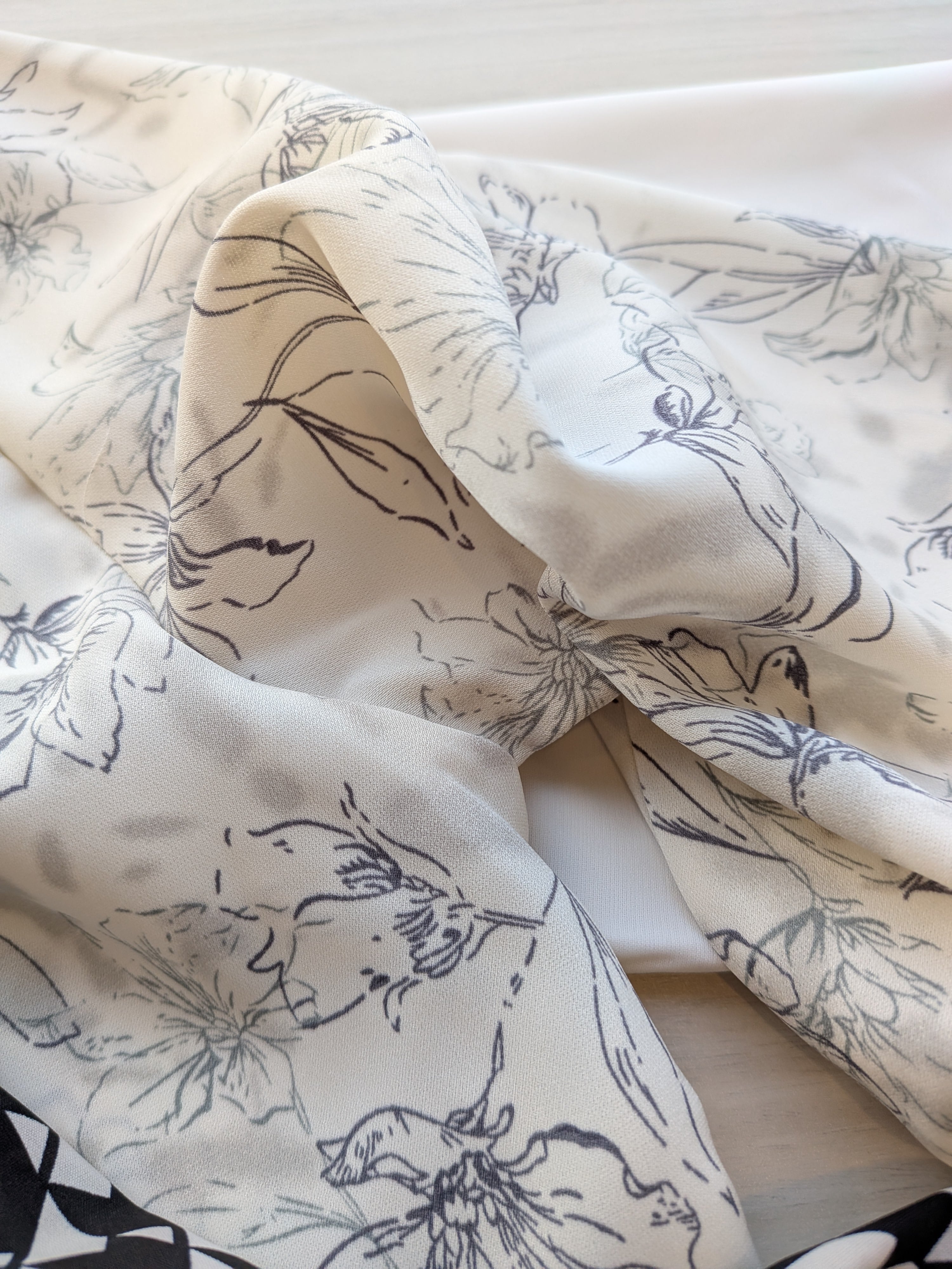 花柄と幾何学柄は、フワッとしたジョーゼットなのに対して、