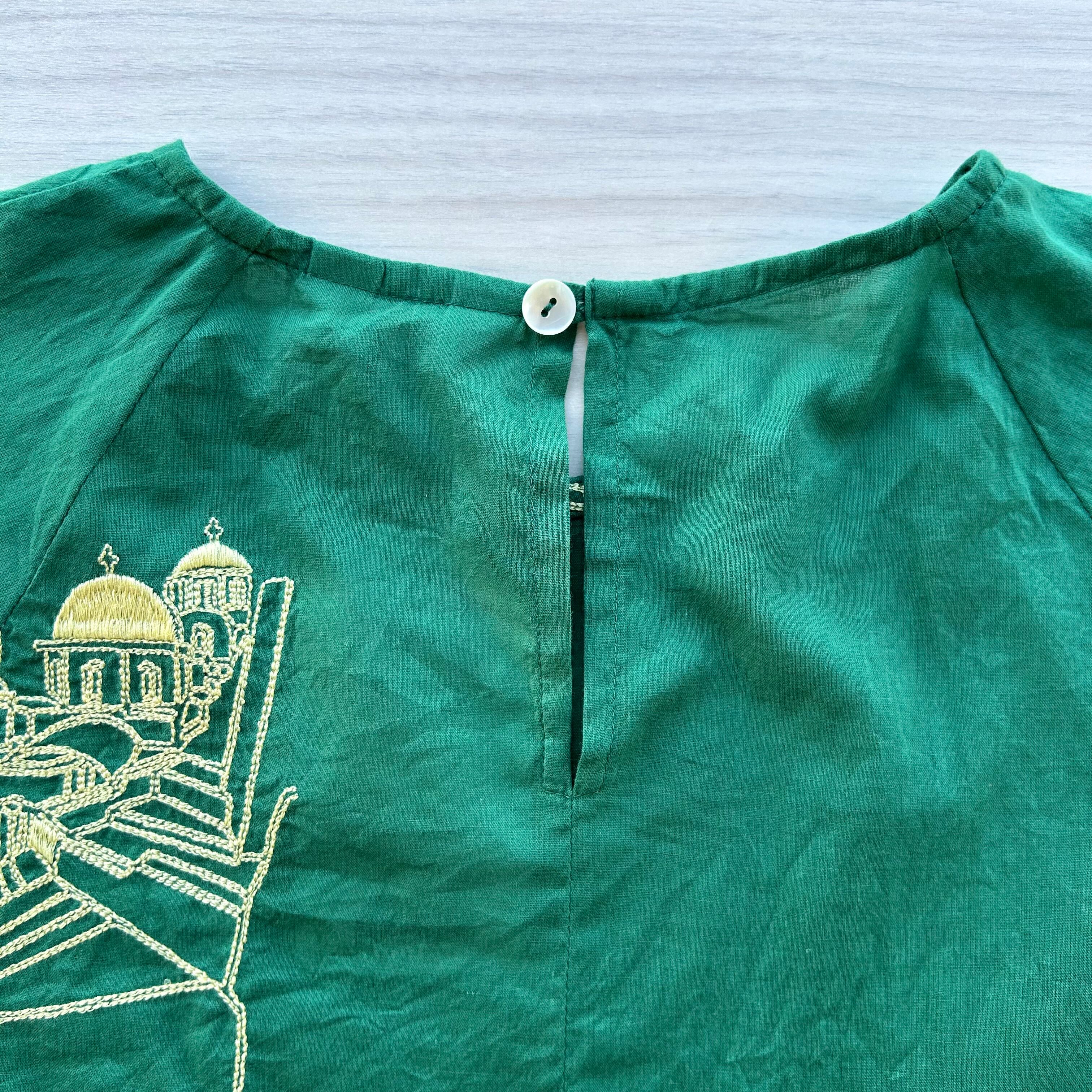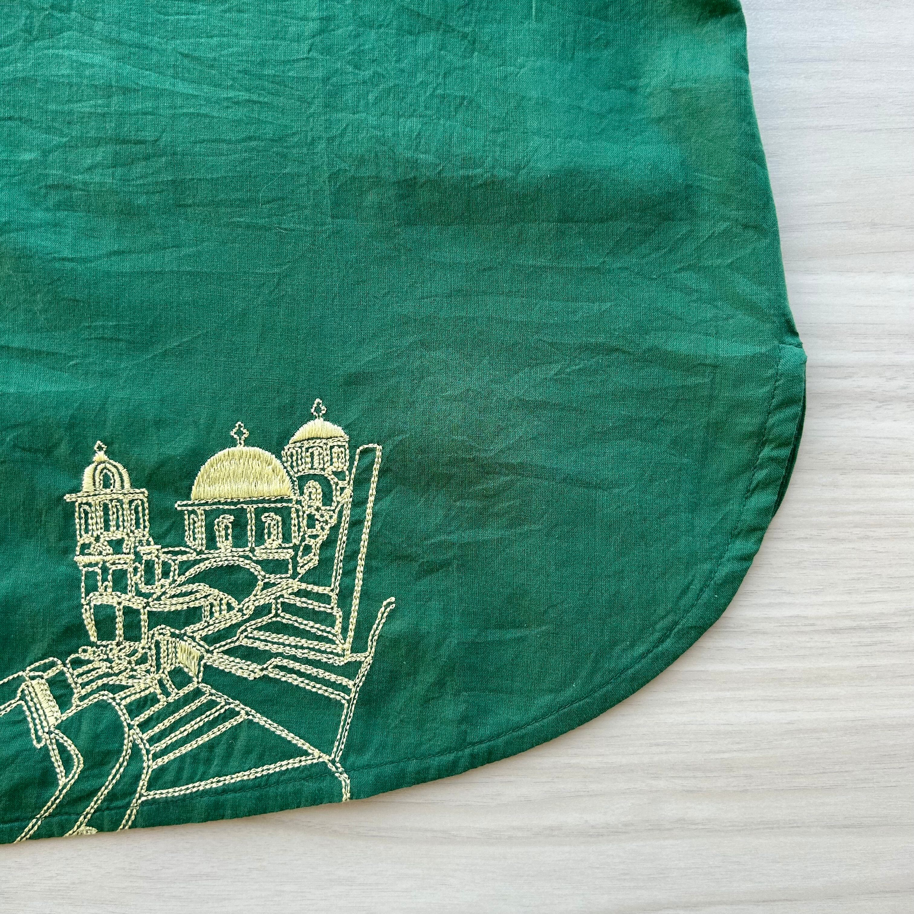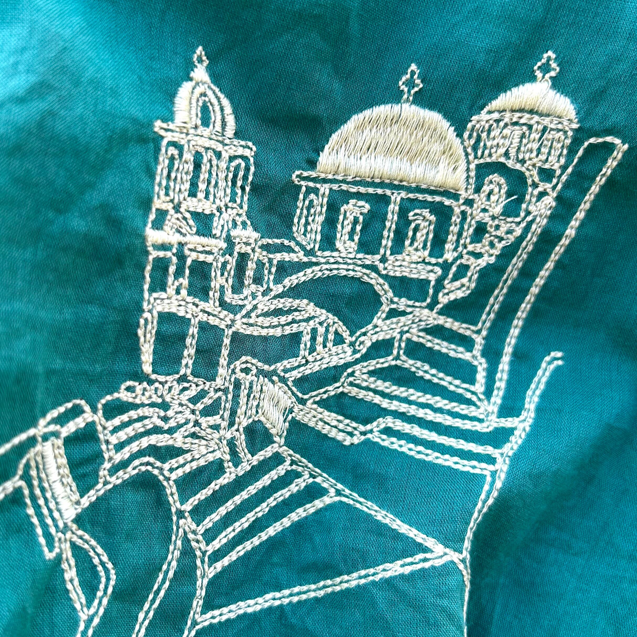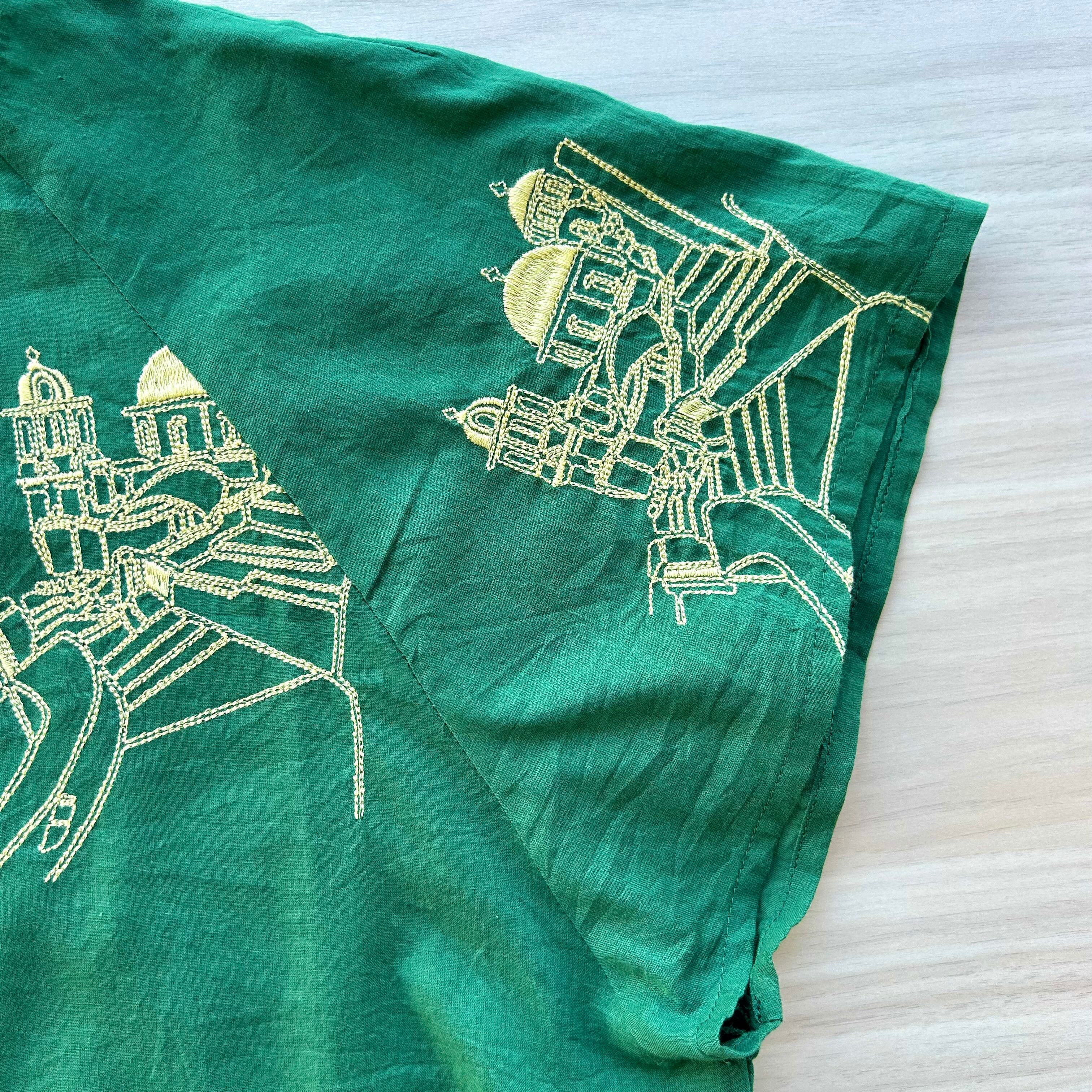 刺繍で異国の建物が表現されています。