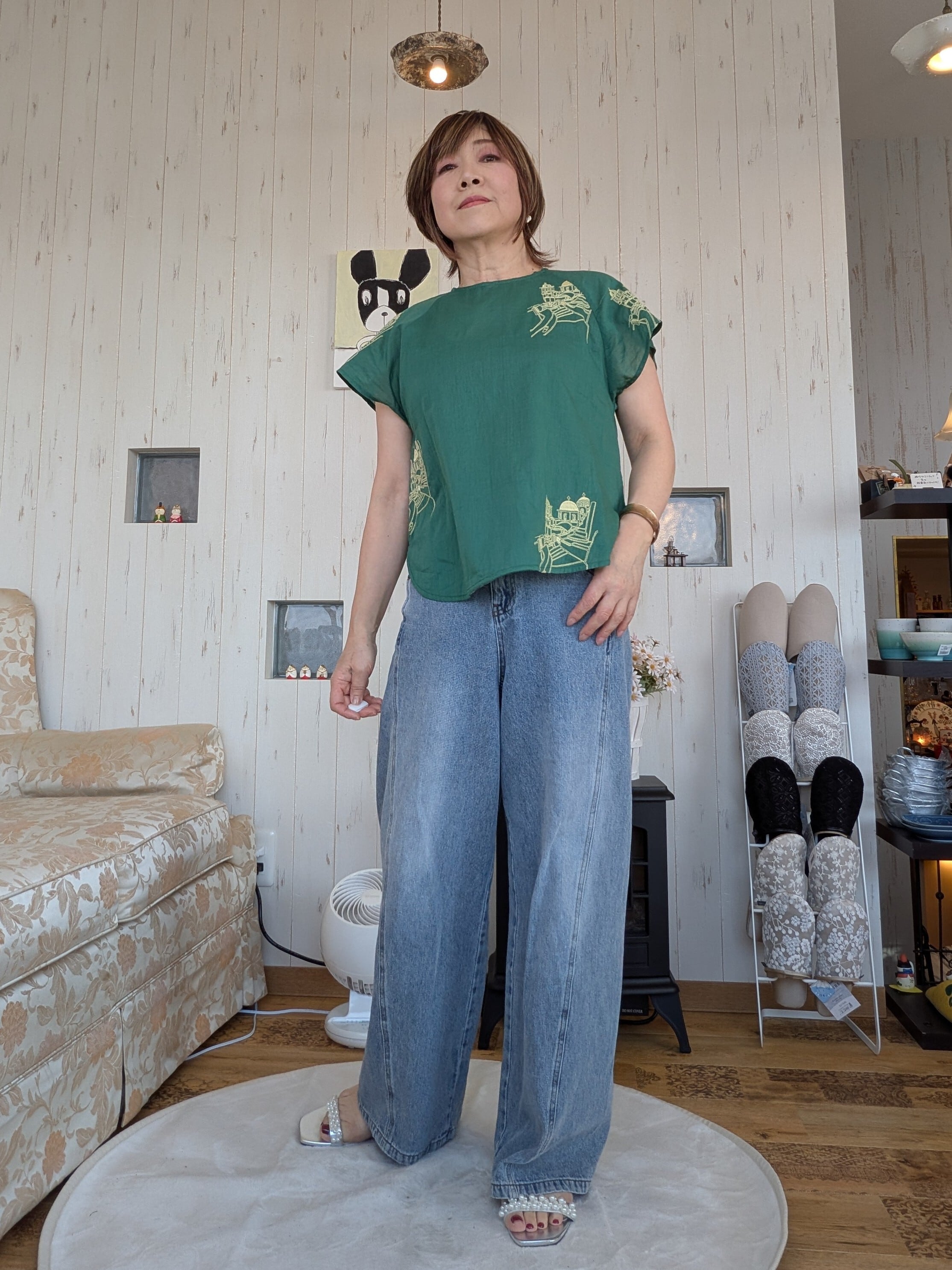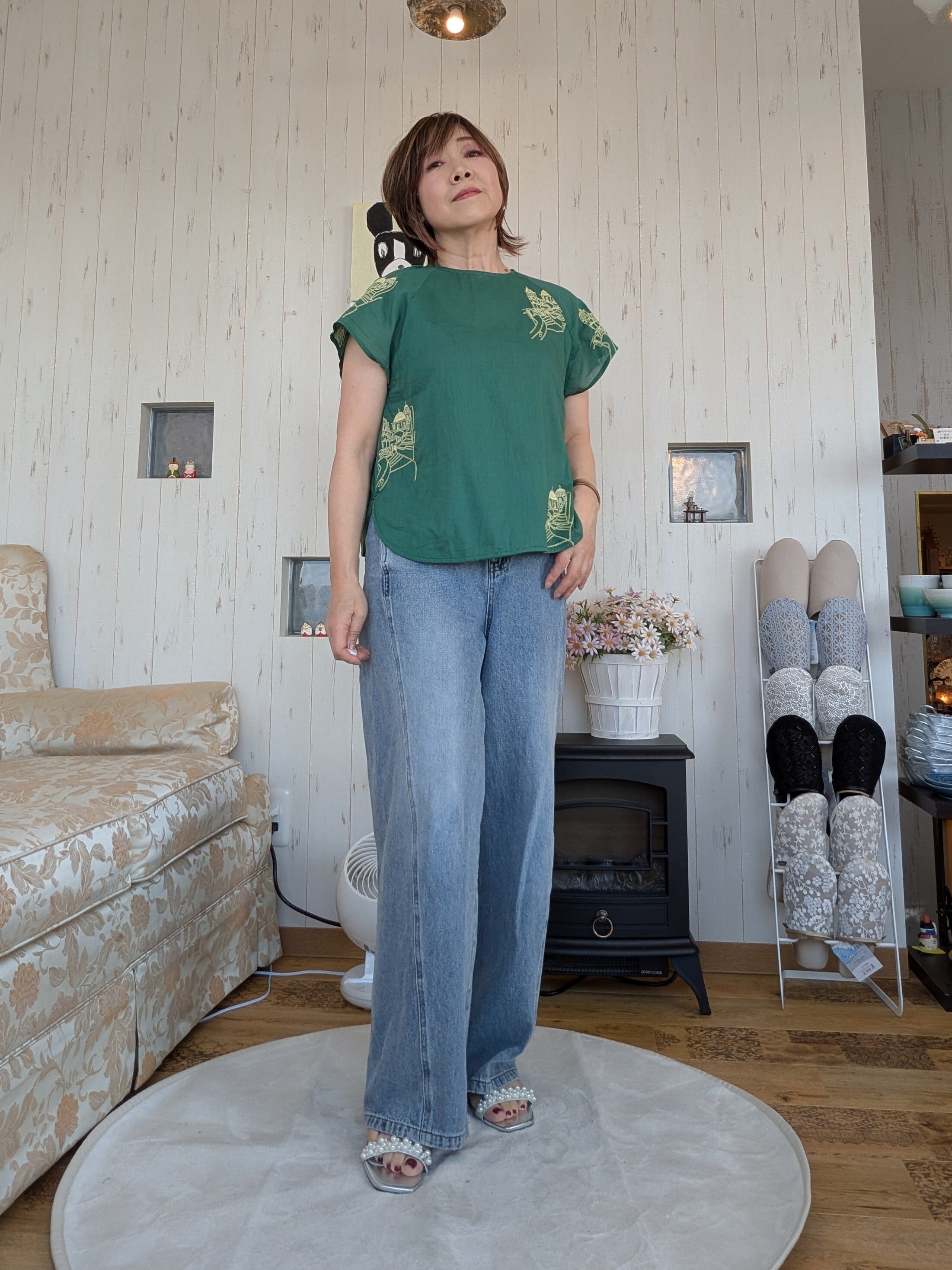 無地感覚でお召しいただけるテキスタイルとシンプルなデザインです。