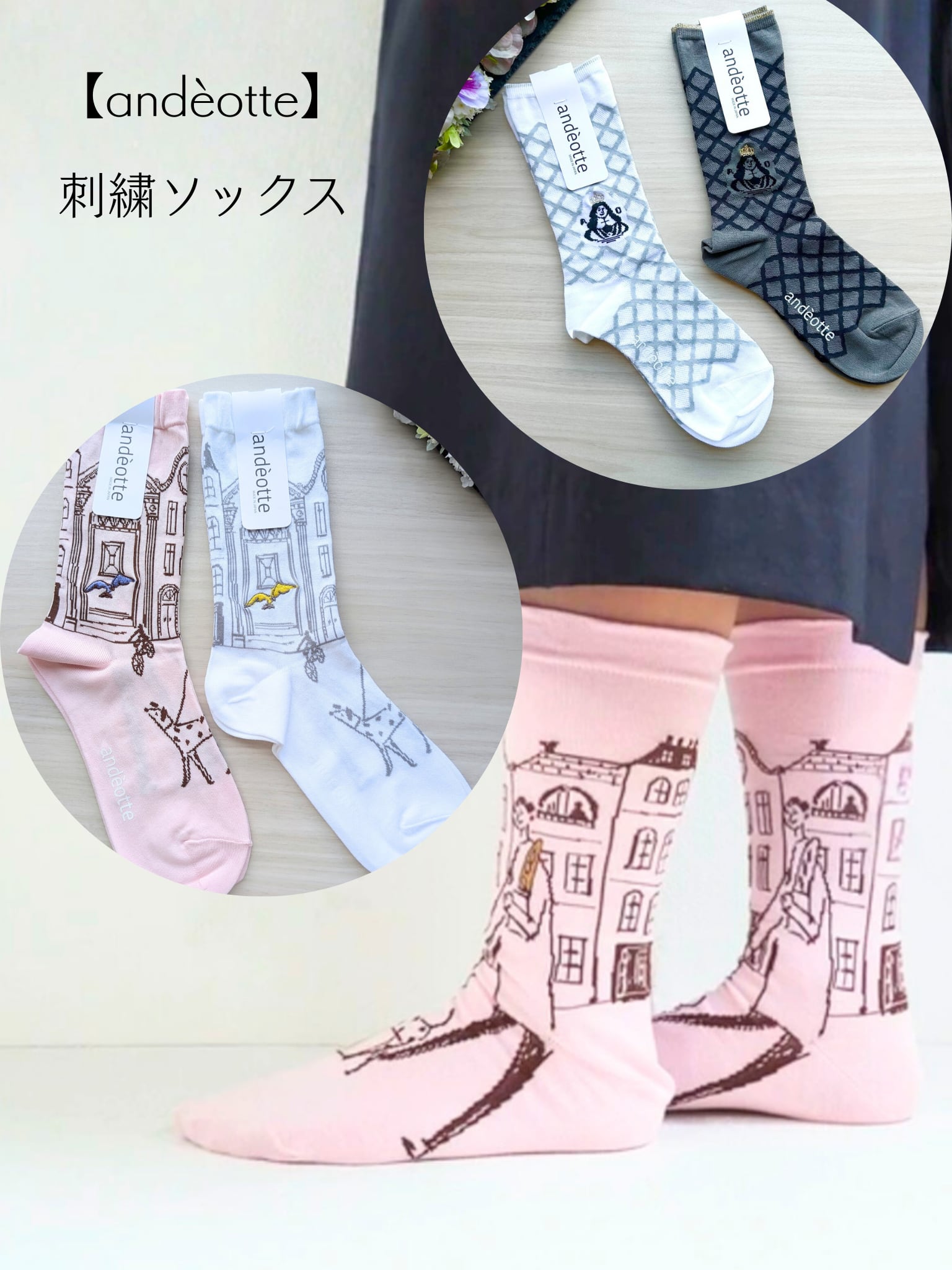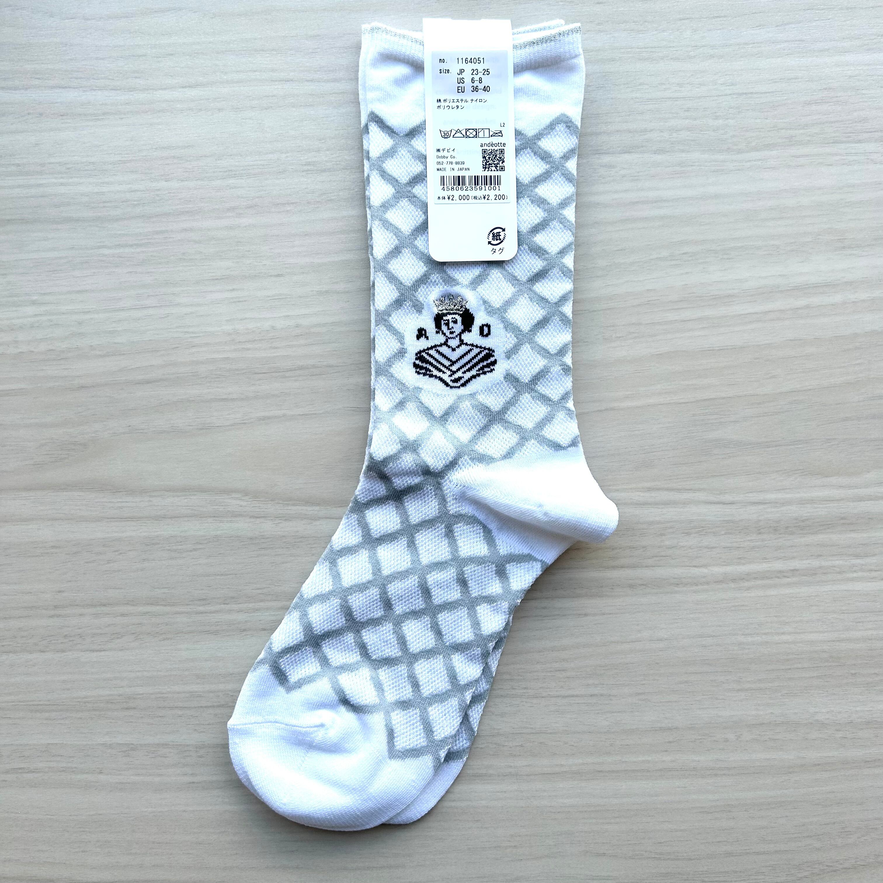 【andèotte】刺繍ソックス◆日本製 クルー丈ソックス