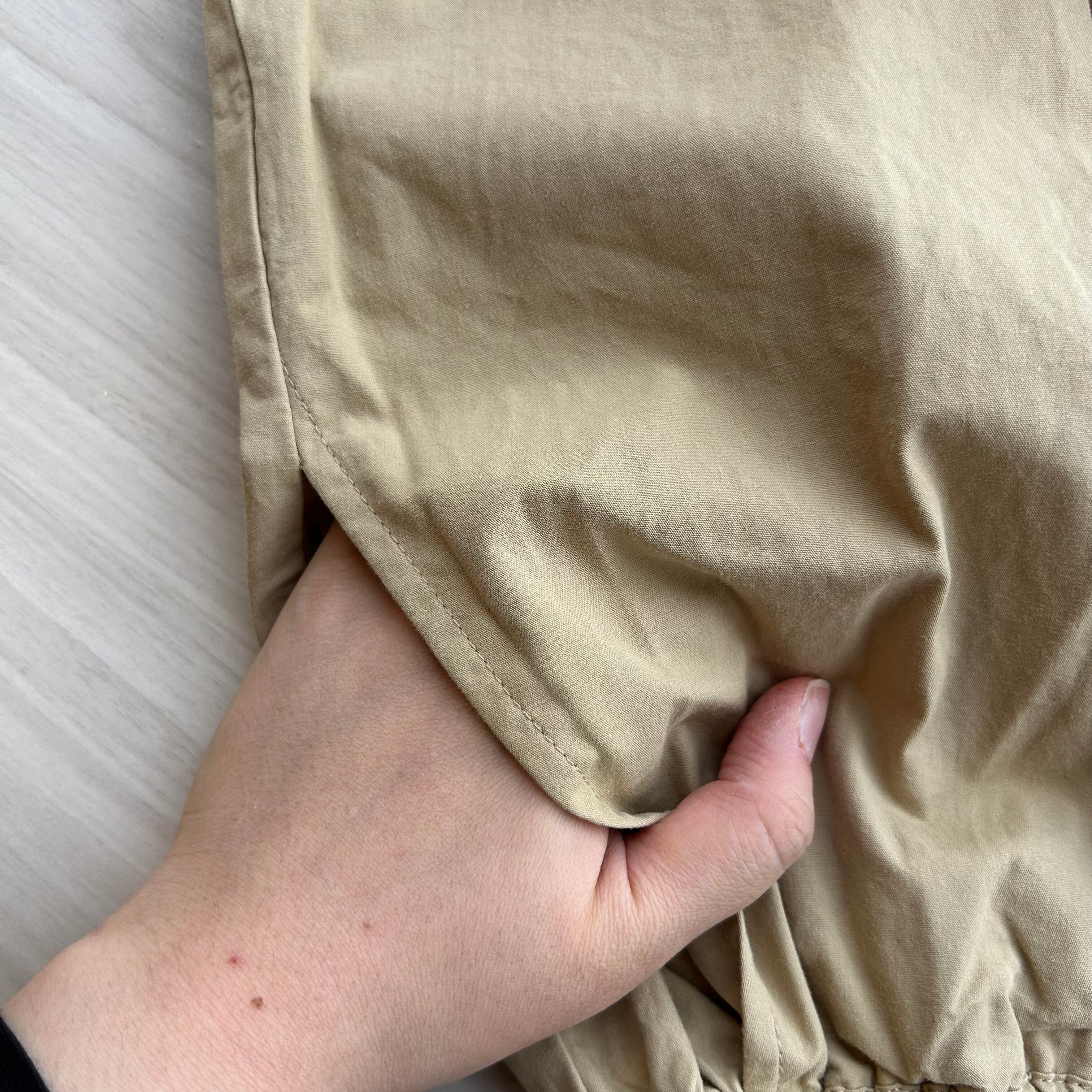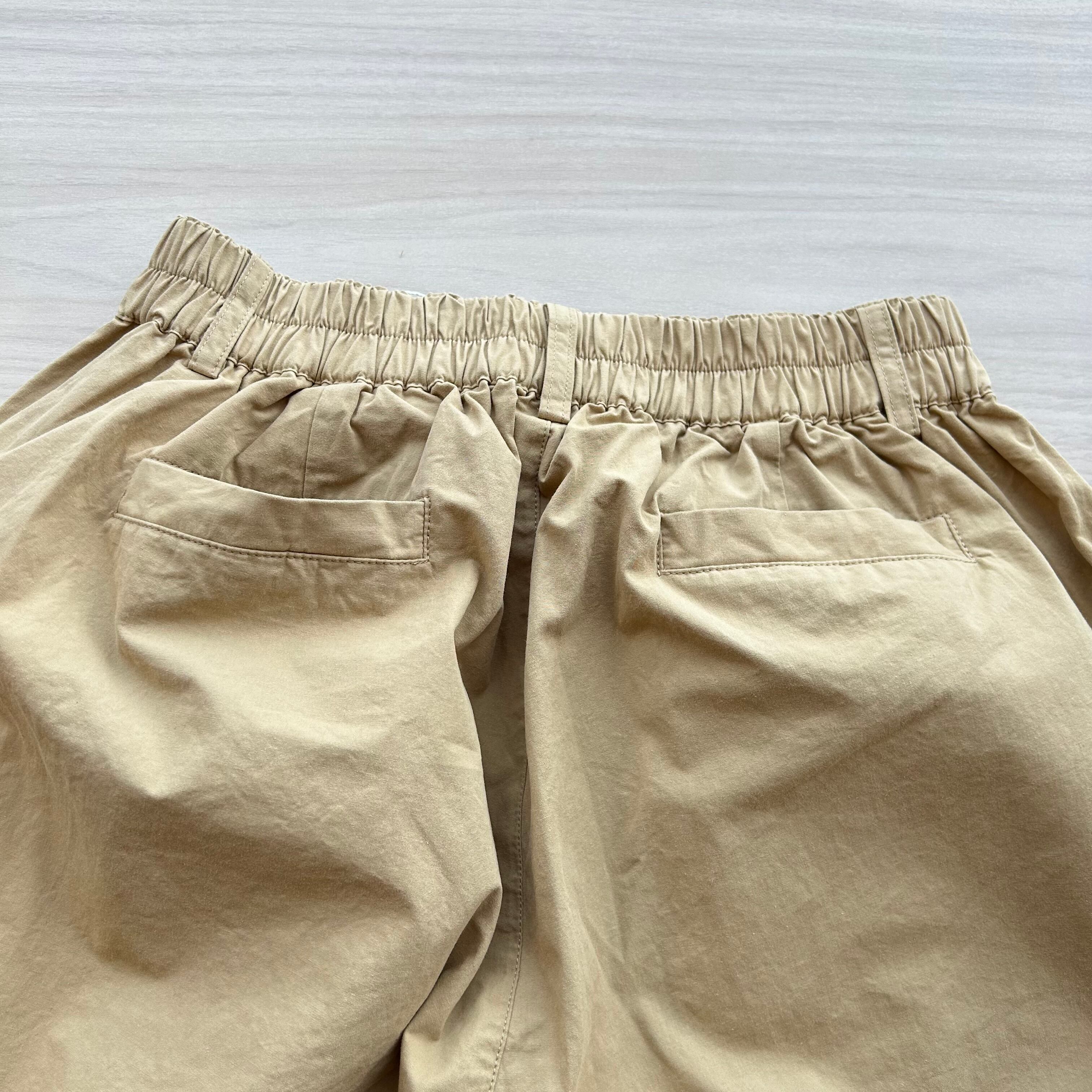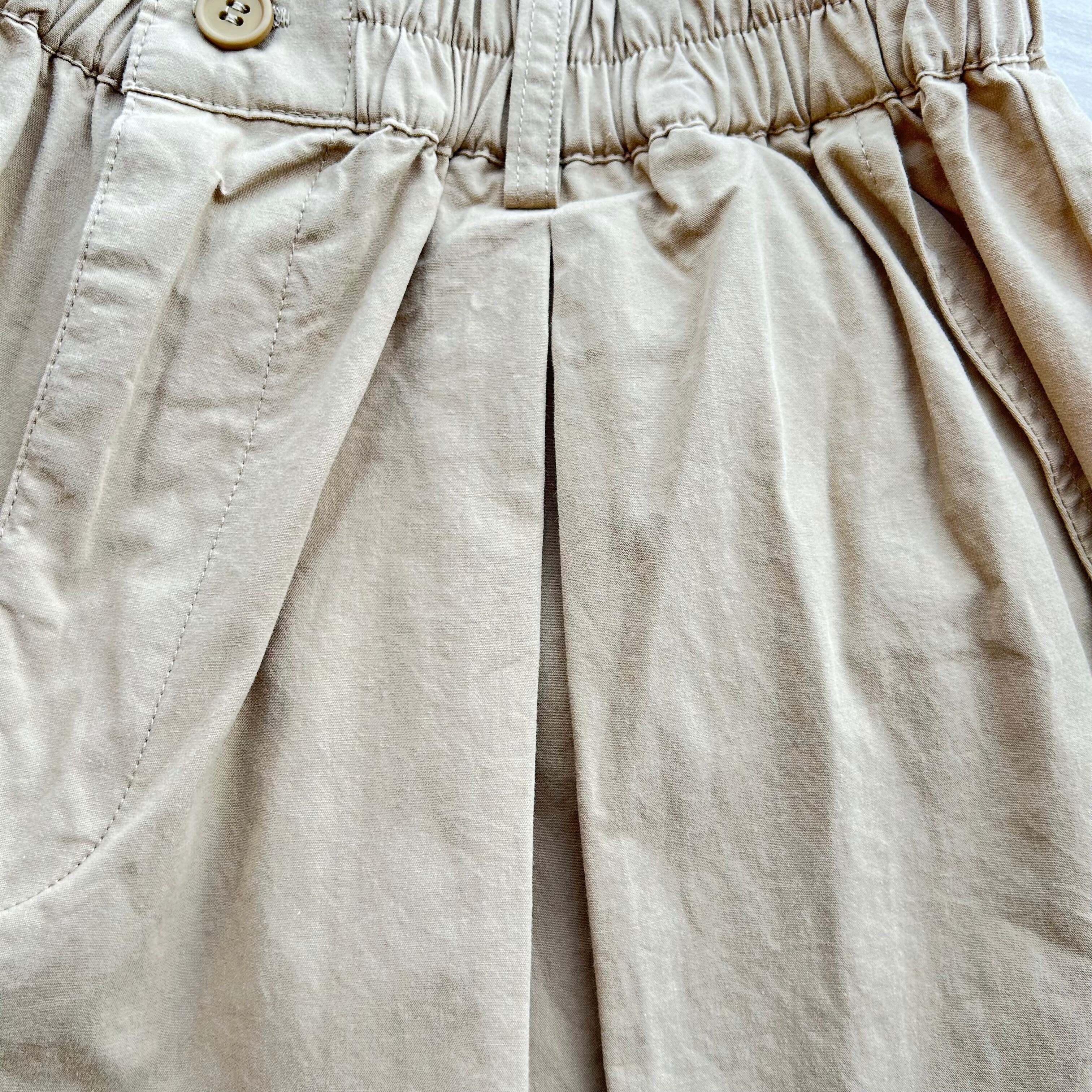 ウエストは総ゴム仕様に加えて、ボタン・ジップ開きの丁寧仕様。