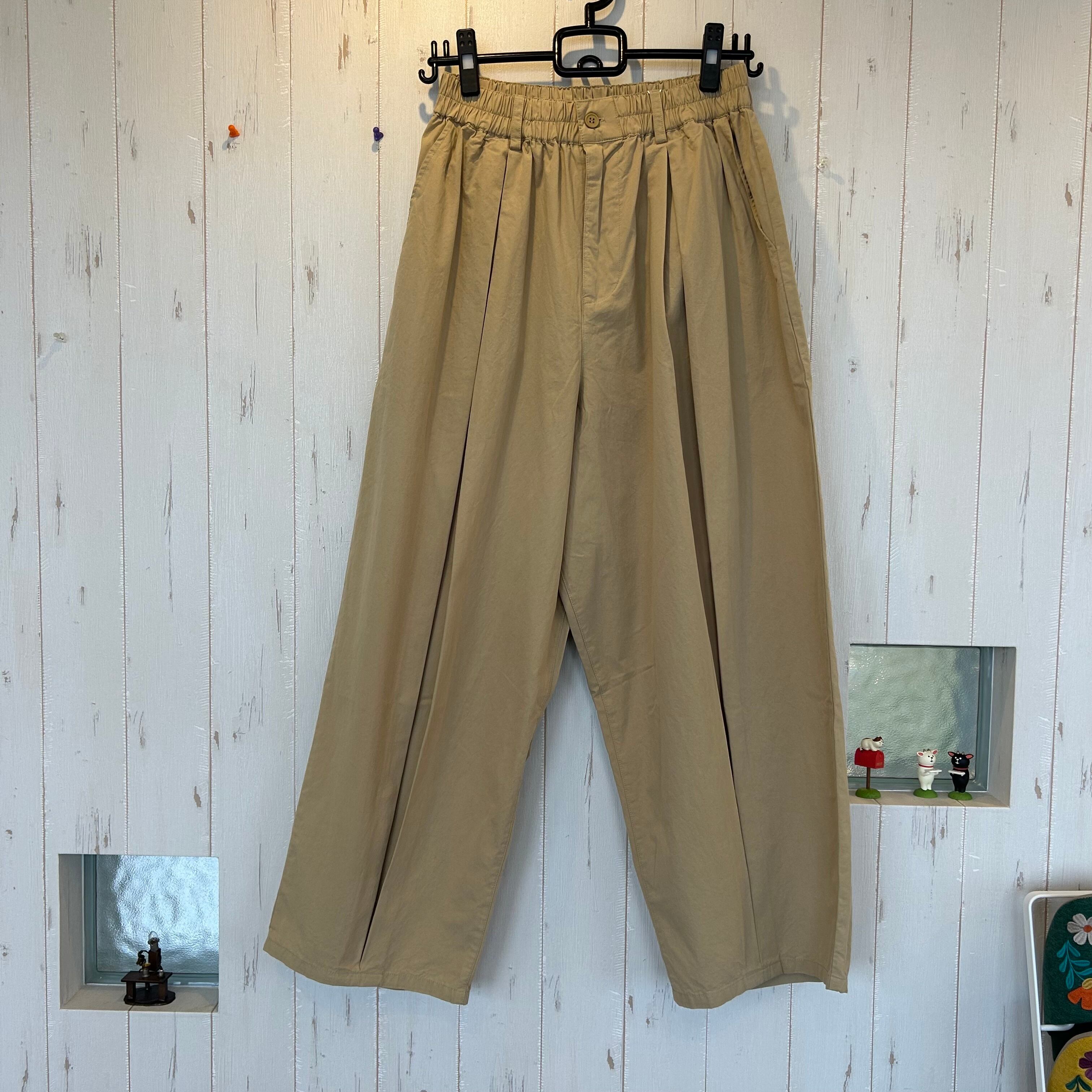 タックが個性的◇ウォッシャブルコットンツイルのビッグタックパンツ