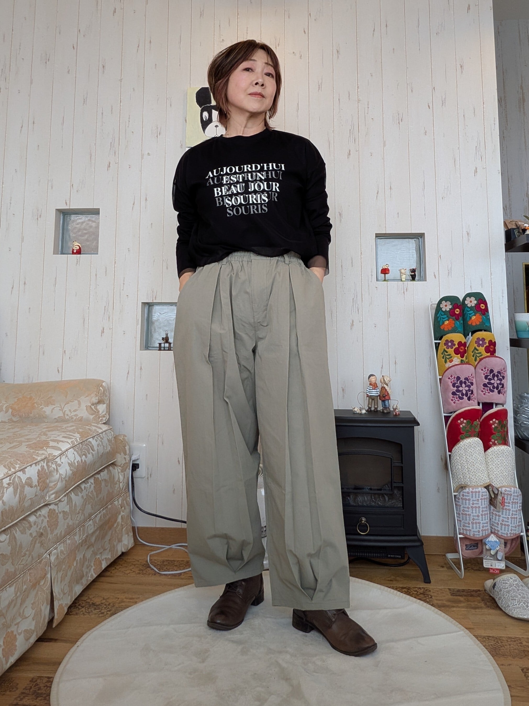 イージーパンツでありながら、きちんと感もキープできるつくりです。