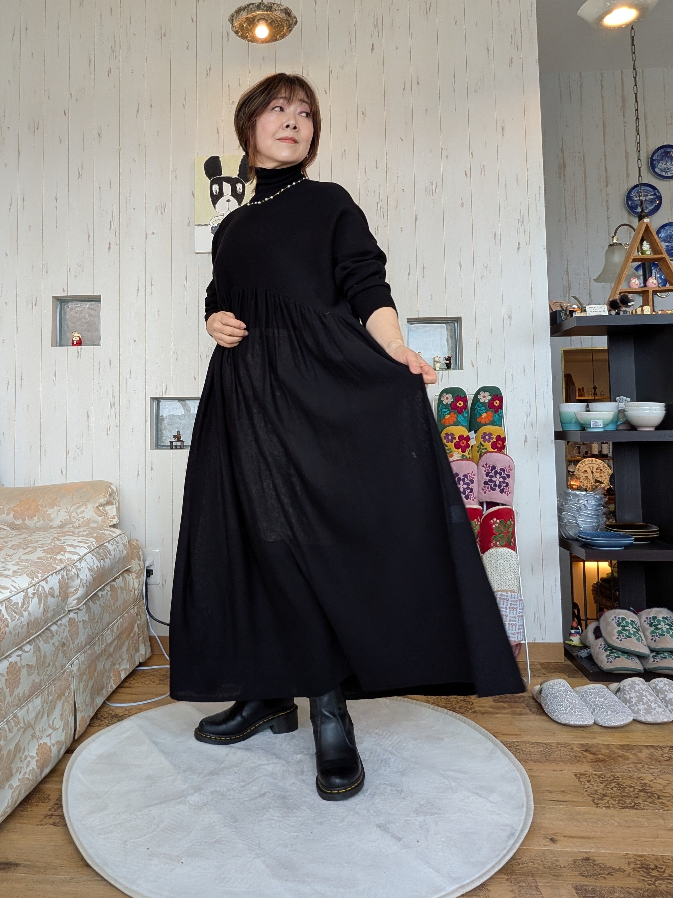 一枚着でコーディネートが完成する、高見えワンピースです。