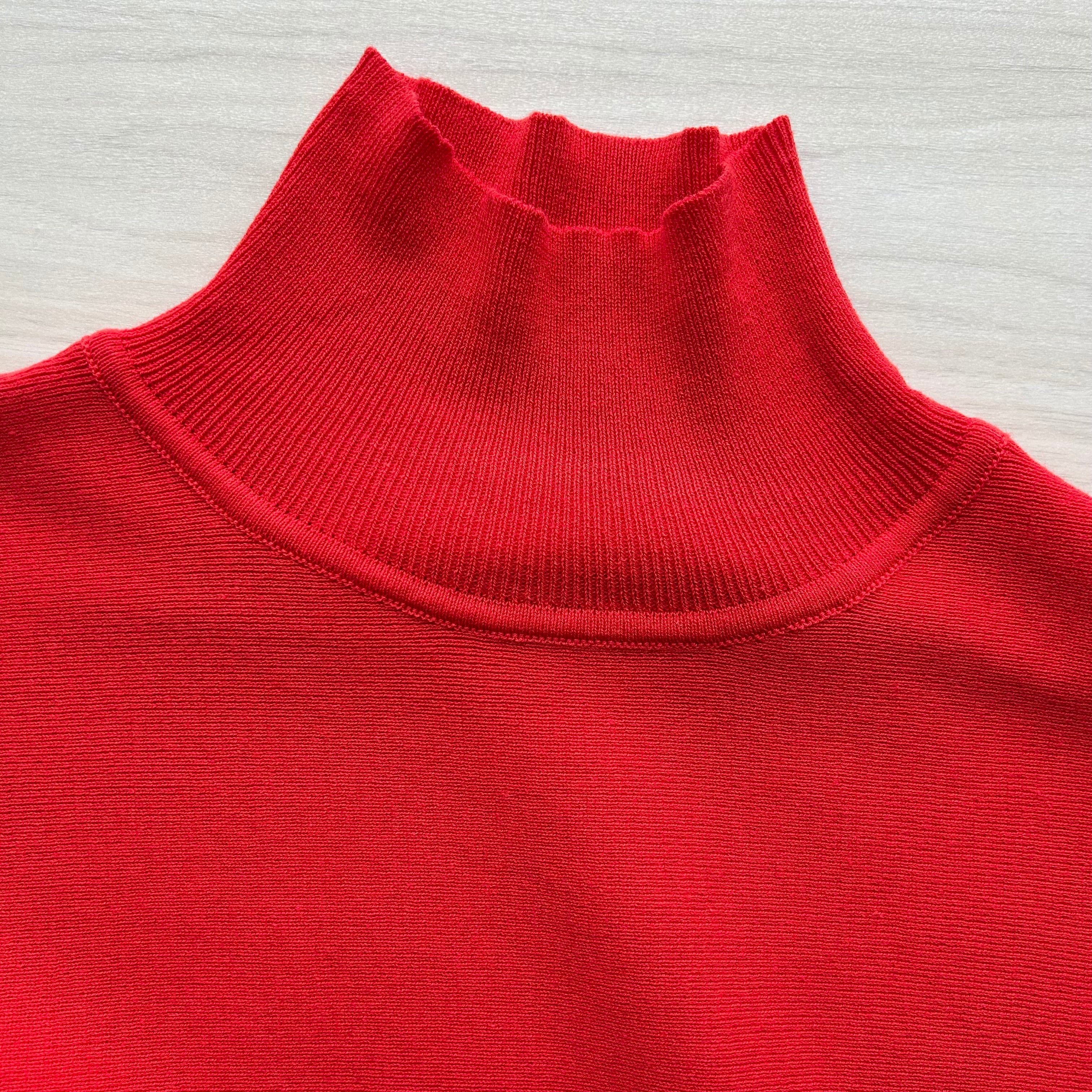 シンプルなハイネックデザインが顔まわりをすっきりと見せ、