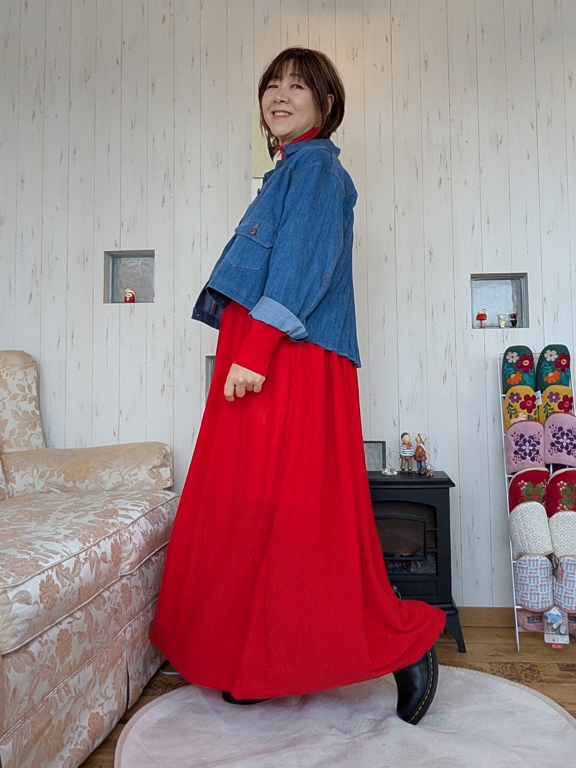 たっぷりと贅沢な生地使いですが、アクリル主体のニットなので、