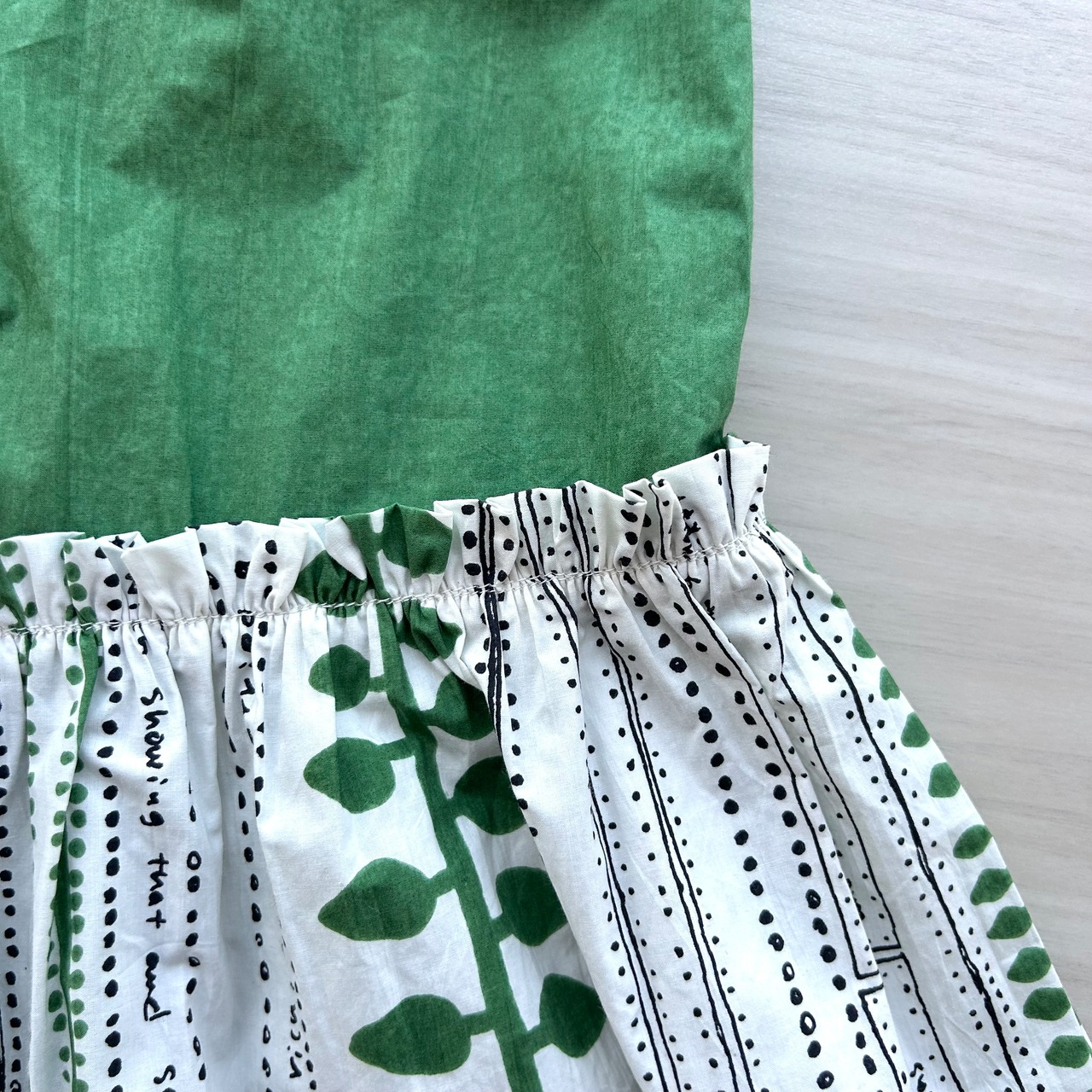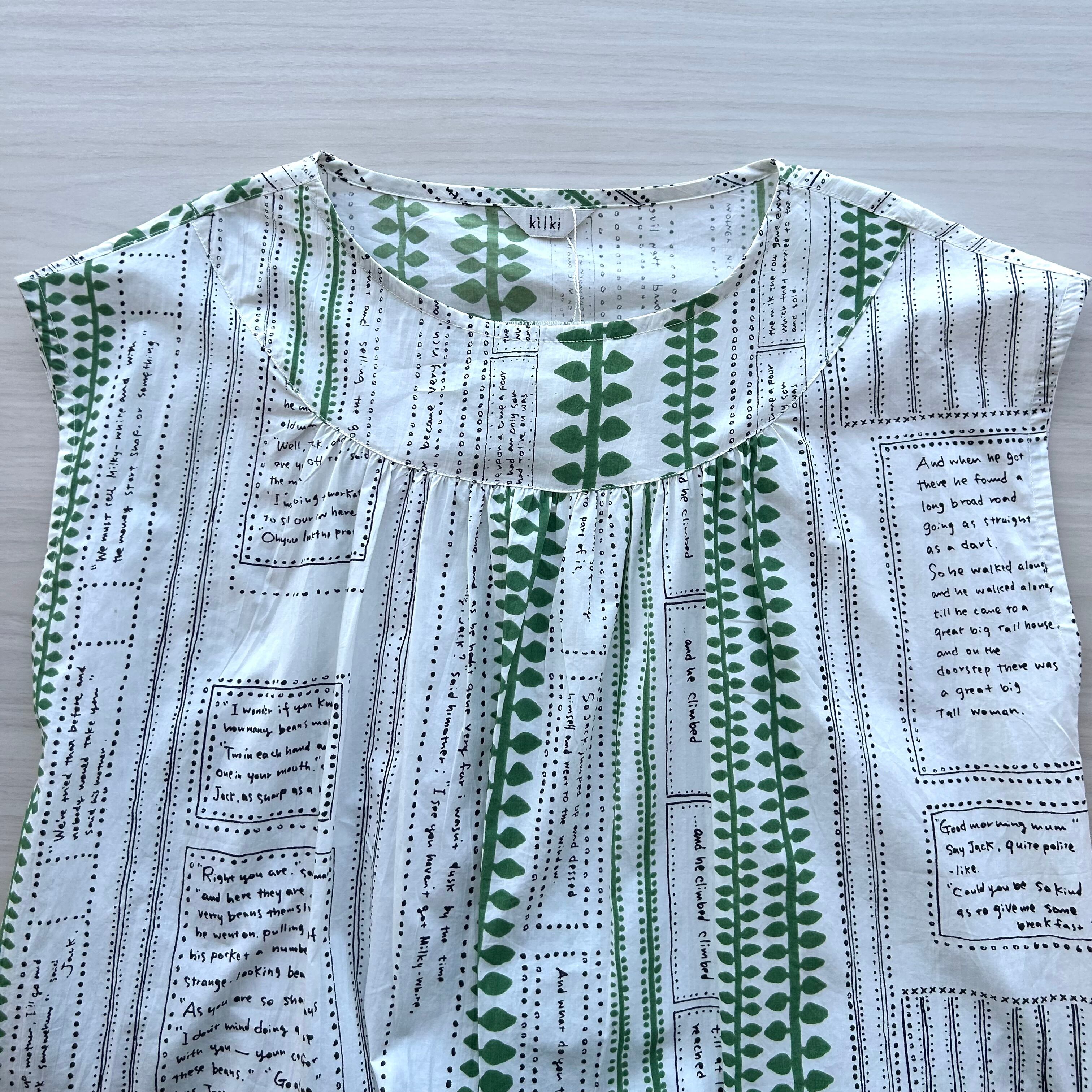 ジャックと豆の木の物語が書かれているテキスタイルです。