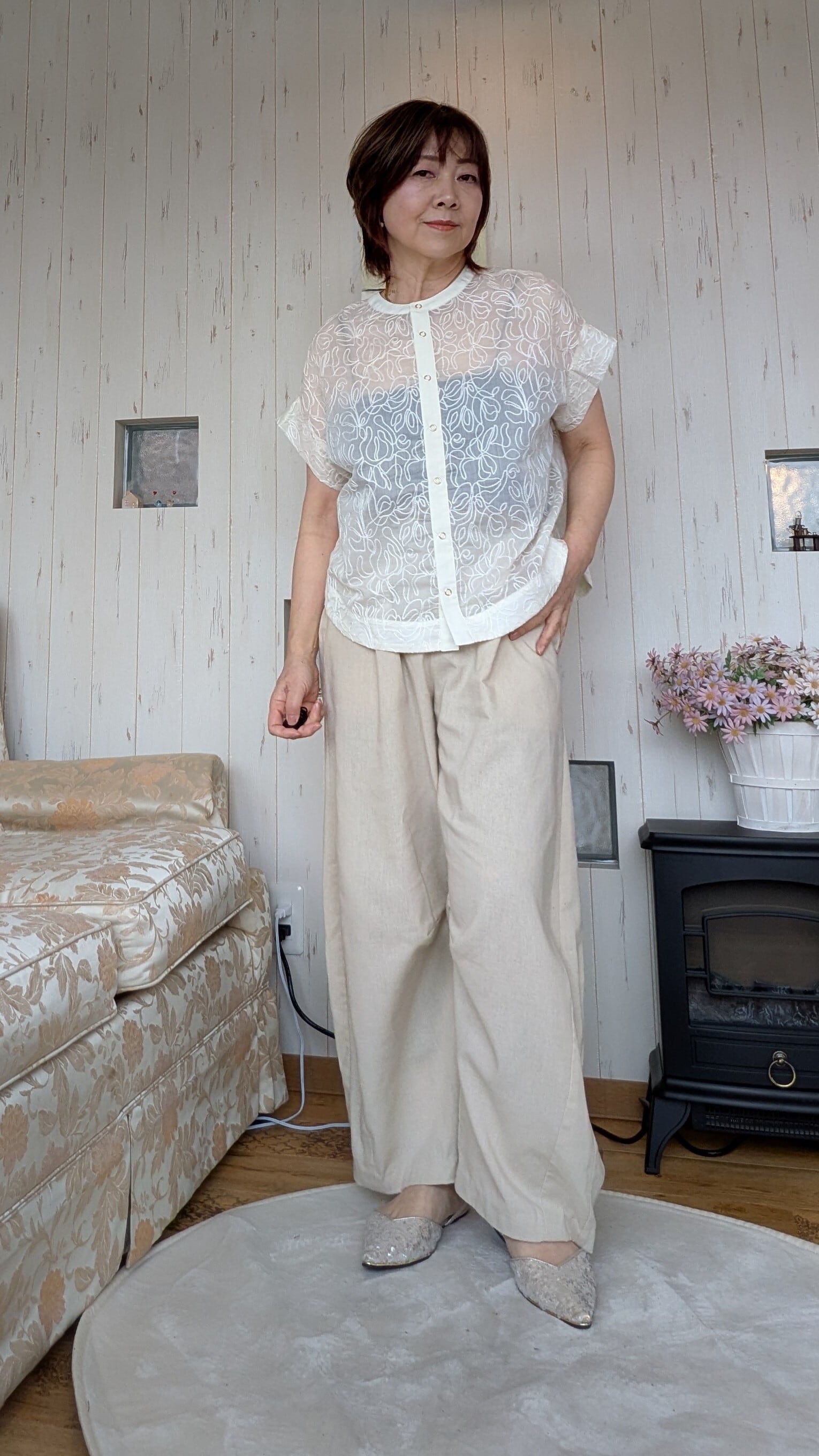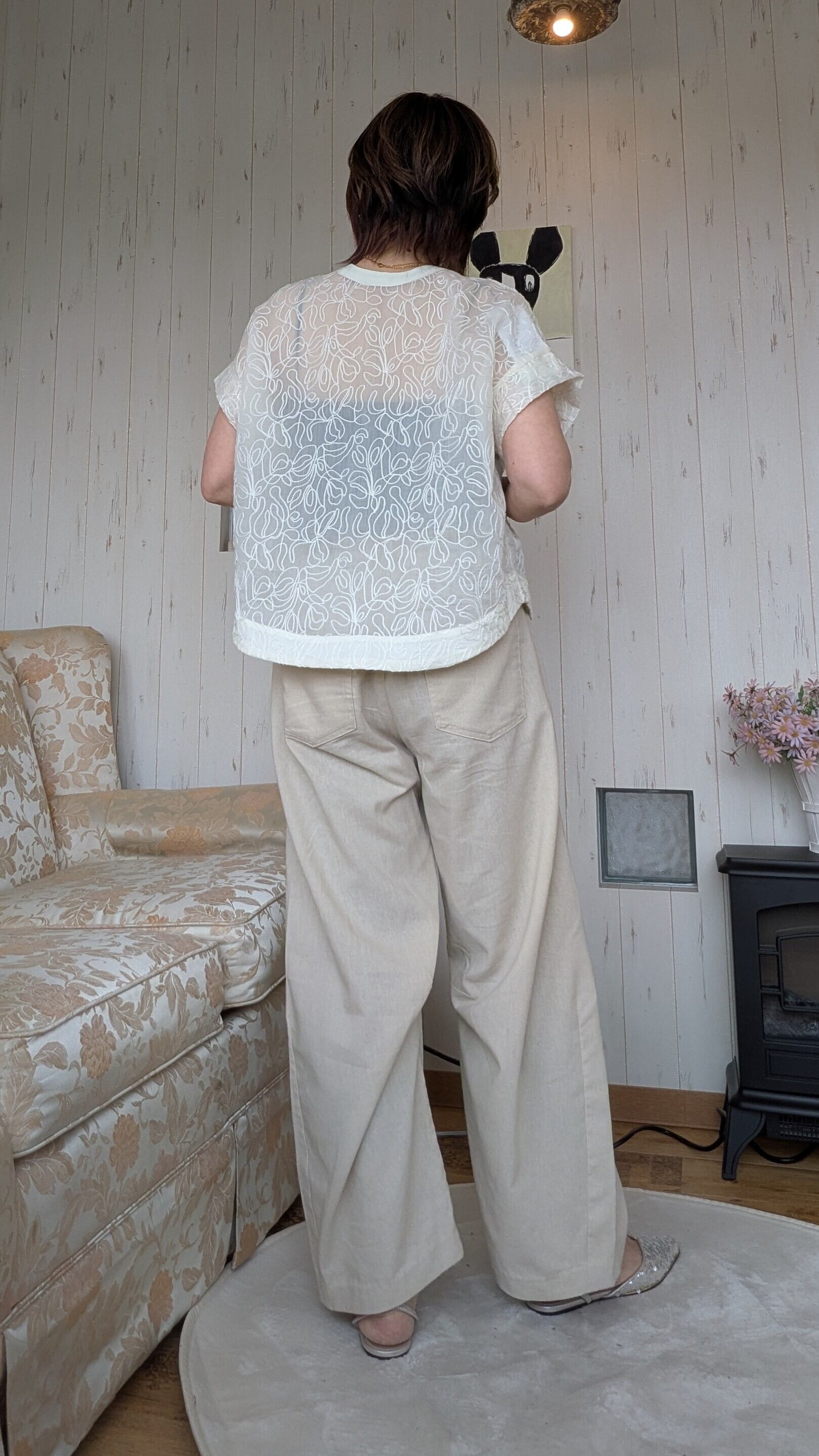 前後2WAY◆シアー刺繍オーバートップス