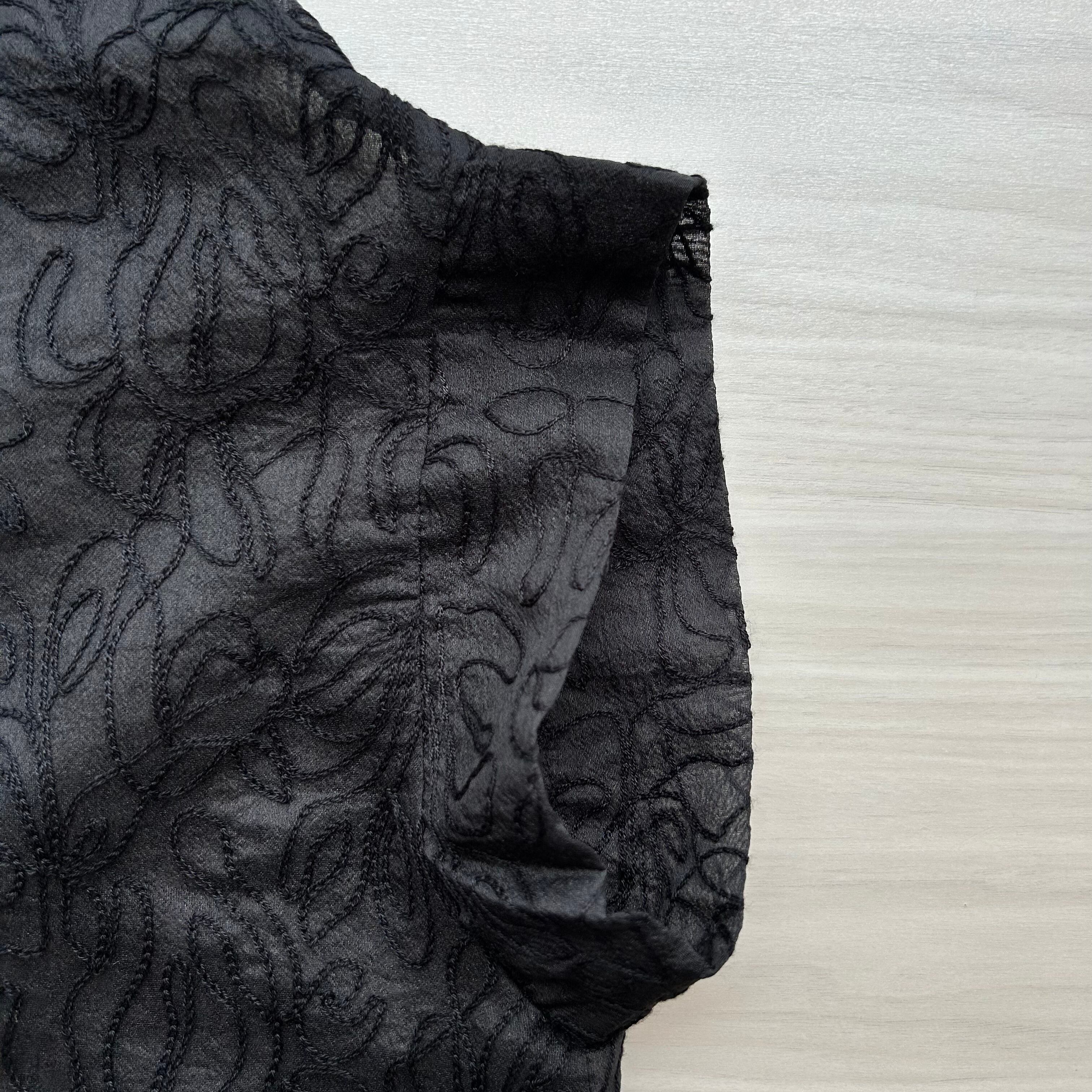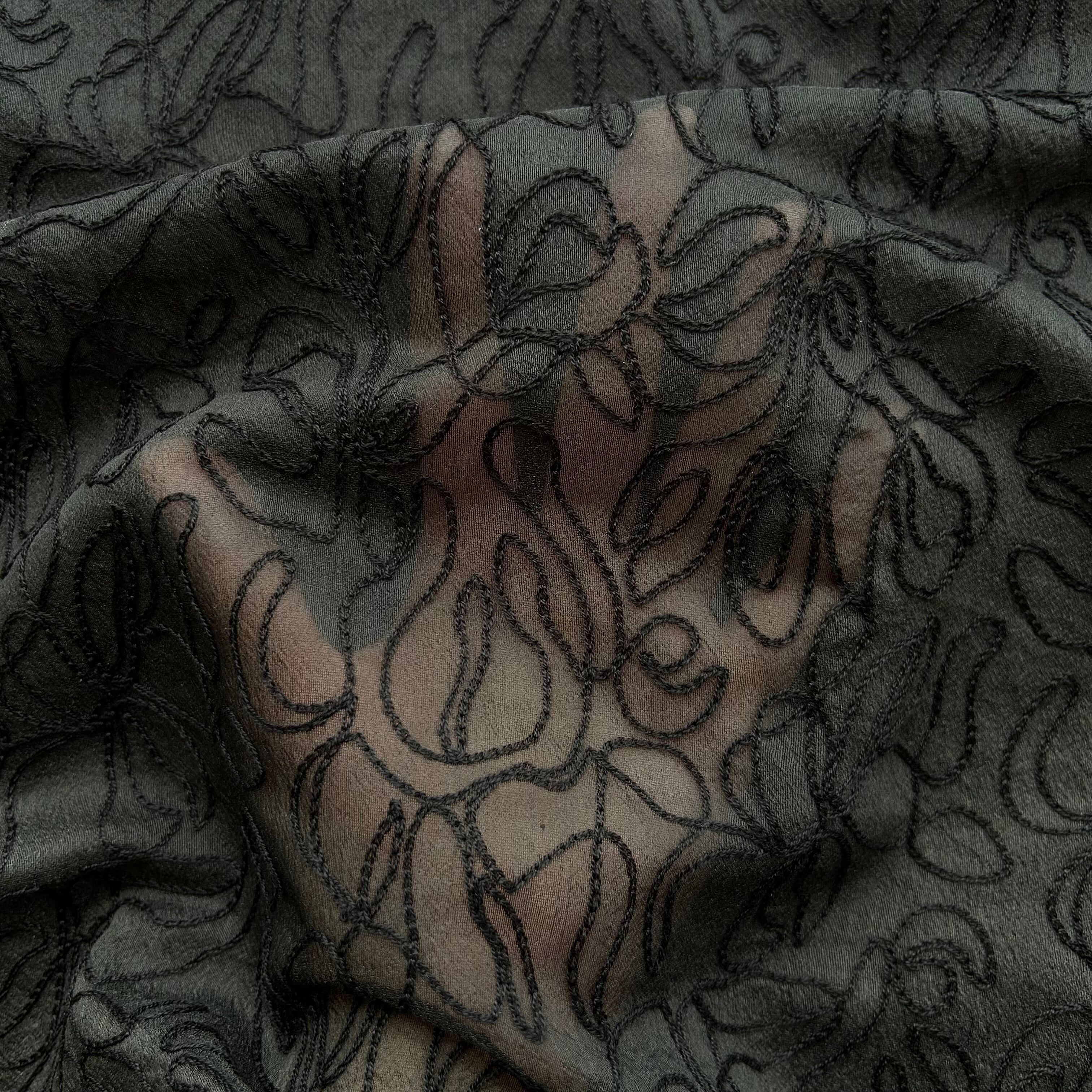 ほどよい透け感のあるシアー素材に、立体的な刺しゅうを施した素材。