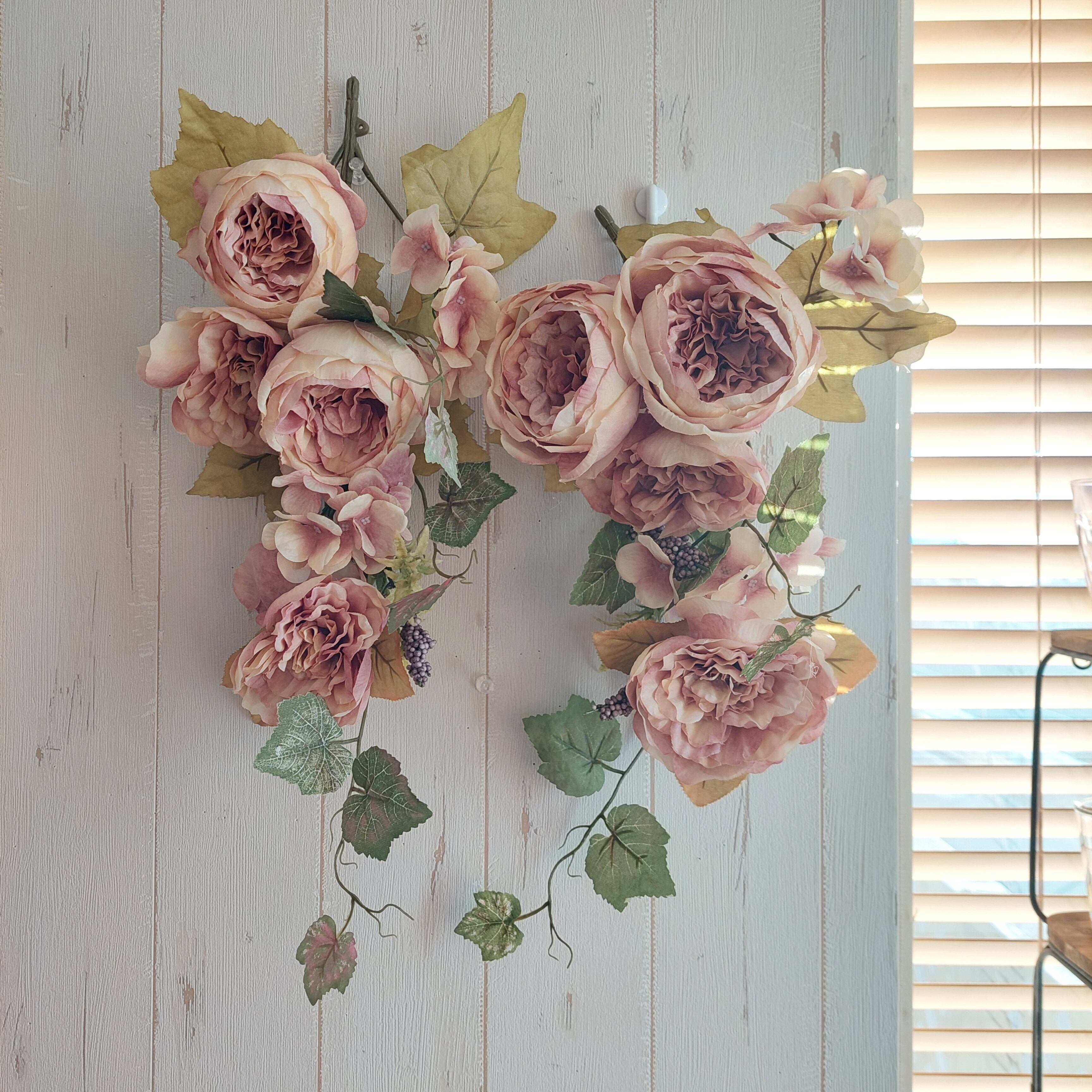 幾重にも重なった花びらがロマンチックなバラのスワッグ