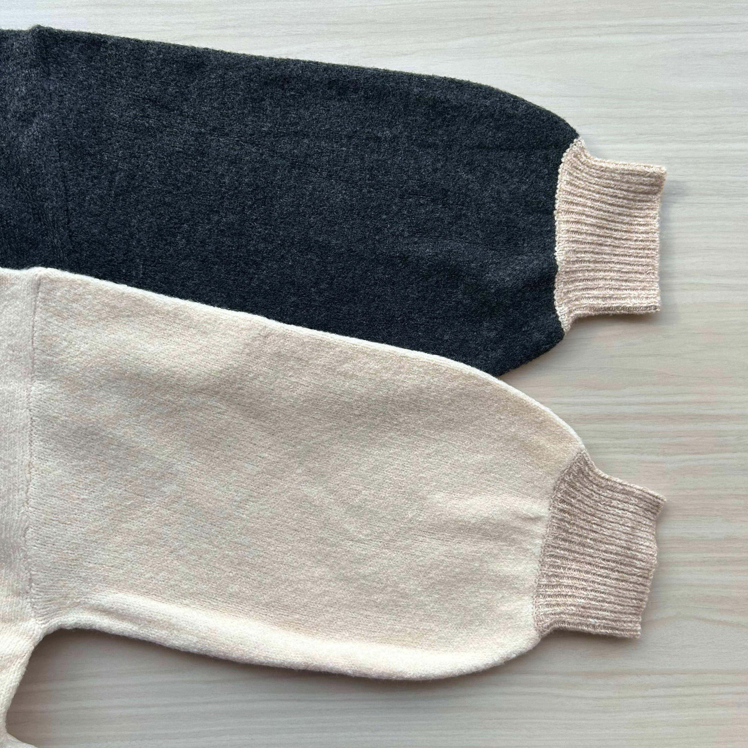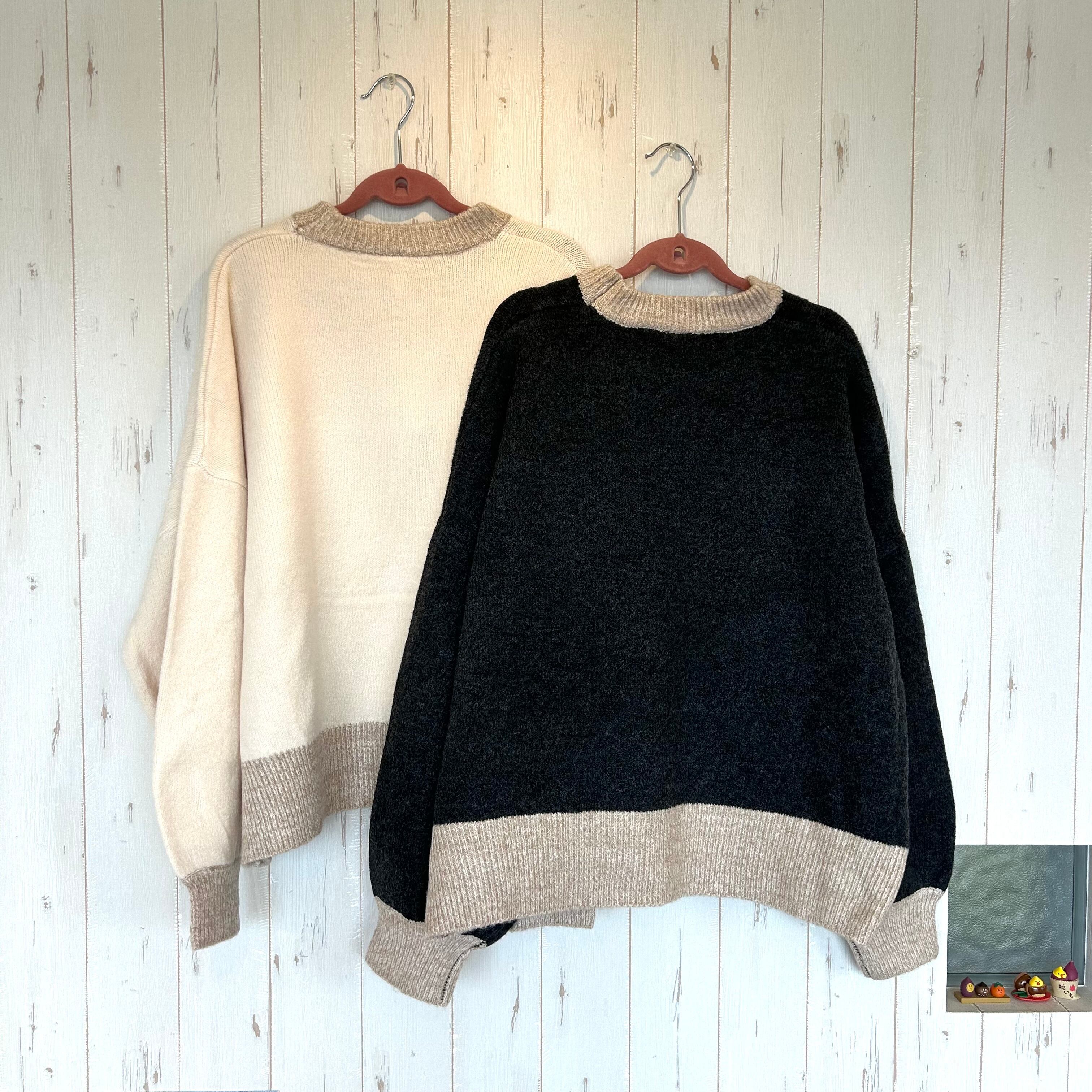 5Gふわかるニット天竺編み◆リブ配色ニットプルオーバー